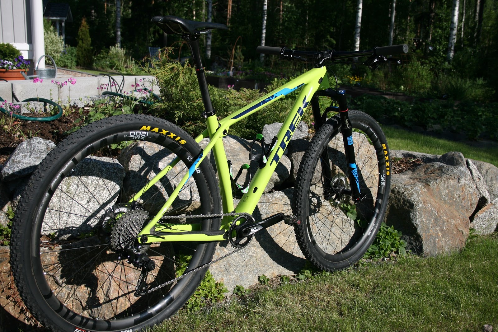 Kyllä vain, uusi plussa-malli kyseessä. Ihan paikallisesta pyöräliikkeestä hommattu, tilasin heti kun reilu viikko sitten tuli markkinoille. 2,8" renkaat tosiaan vakiona, eteen menisi heittämällä 3" nakki, taakse en ole varma. Pitää jossain vaiheessa ihan mielenkiinnosta kokeilla miten isompi rengas mahtuu, ihan hirveästi haarukkaan ei jää varmaan tilaa. Painoa on 12,85kg kuvan kokoonpanolla. Muutoksia alkuperäiseen on ainoastaan yksi eturatas, eri satula ja hissitolppa sekä tubeless-muunnos.