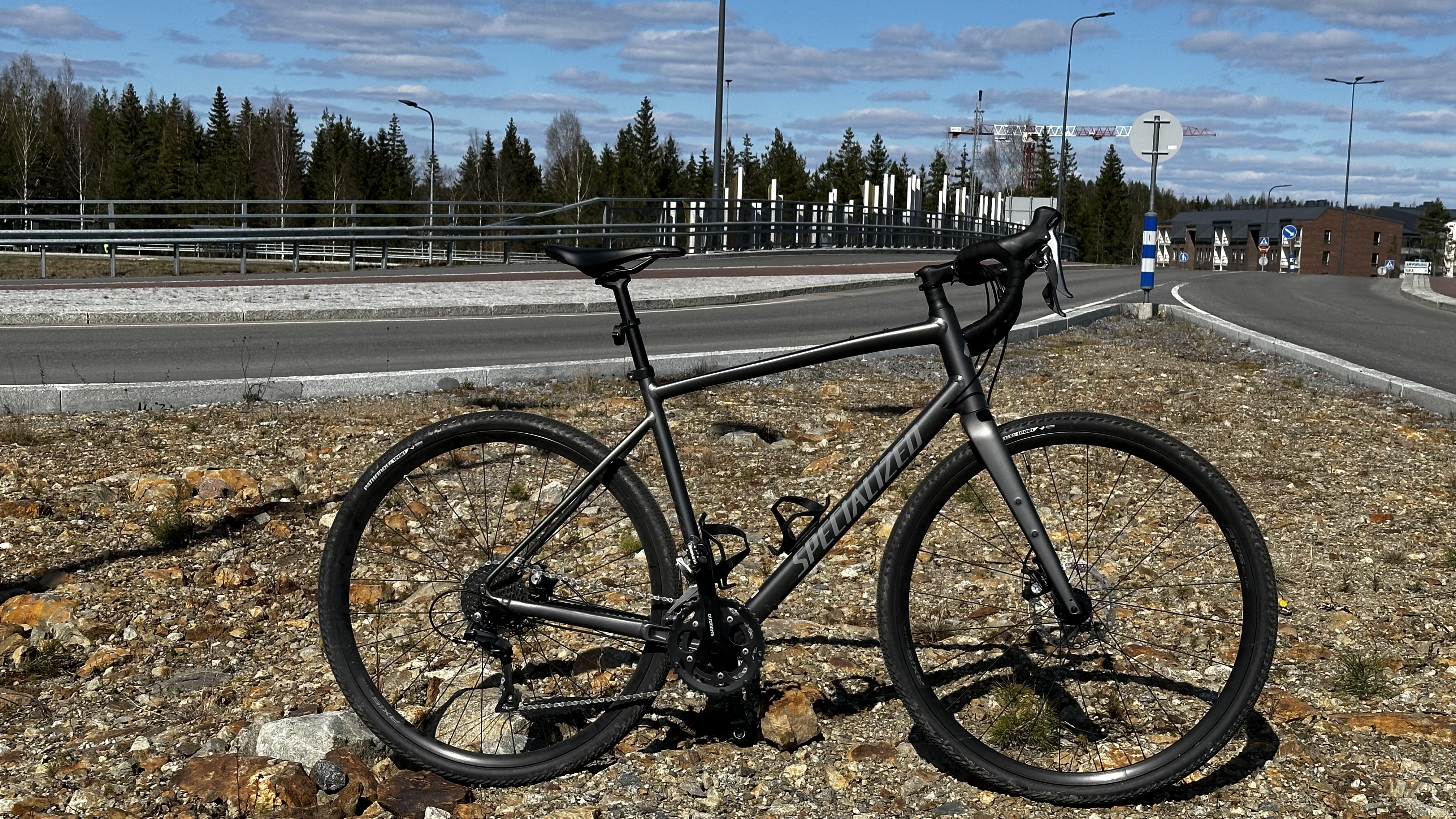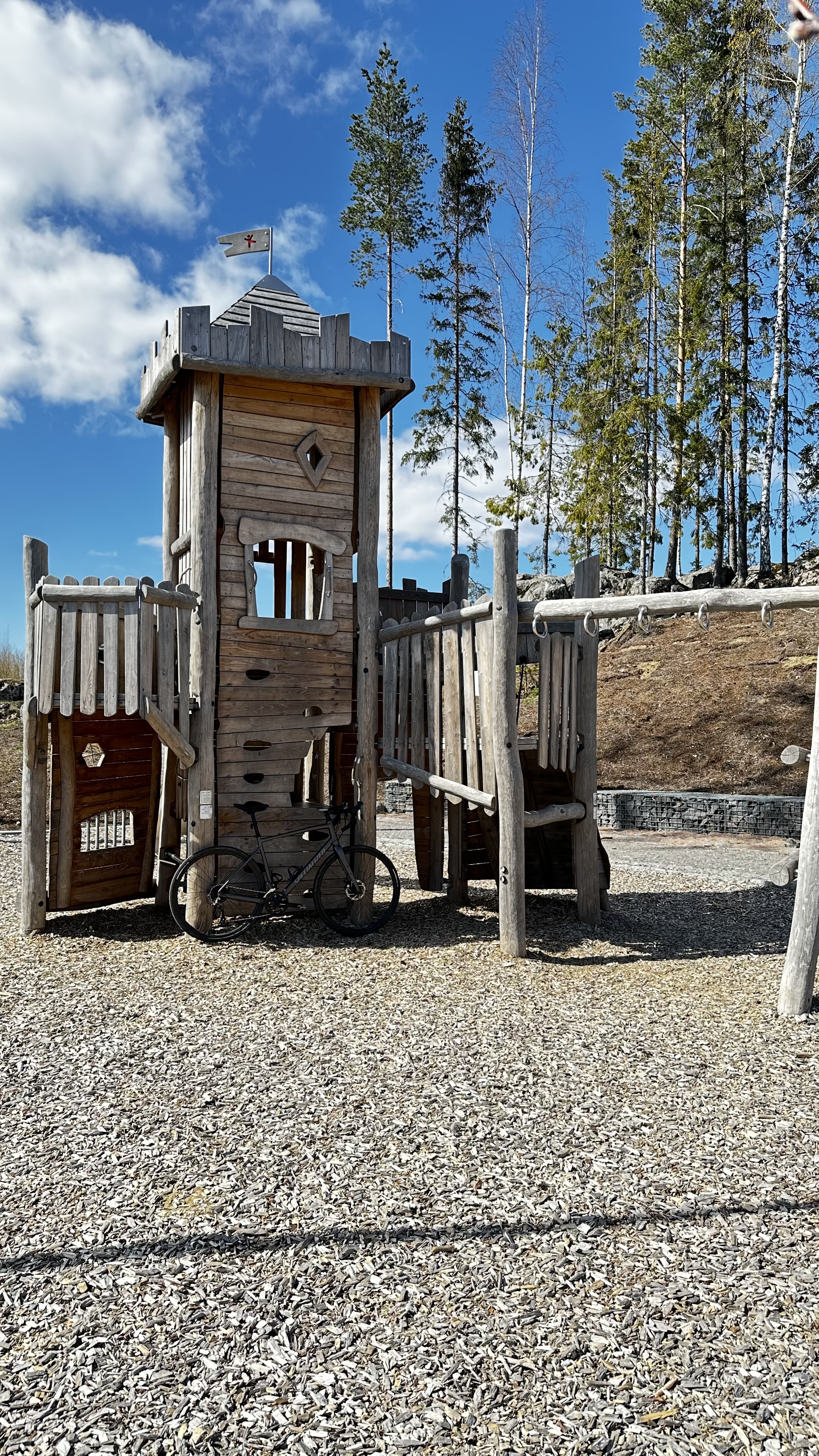 Edellisellä pyöri ukkoa työn touhussa sen verran, ettei viitsinyt pyörää sen paremmin asetella paikoilleen.