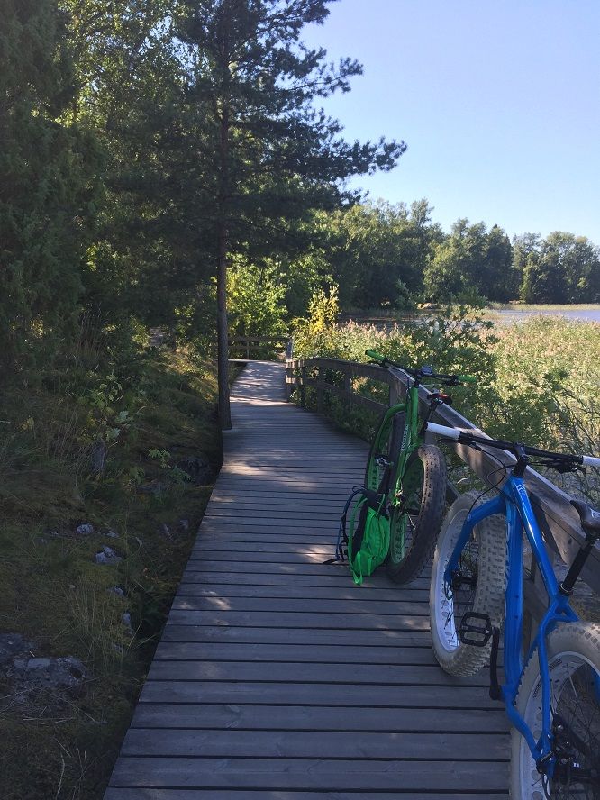 Vihjeenä, että kuvarasti on saaressa. Oikealla kuvasssa puiden takana näkyy vettä.