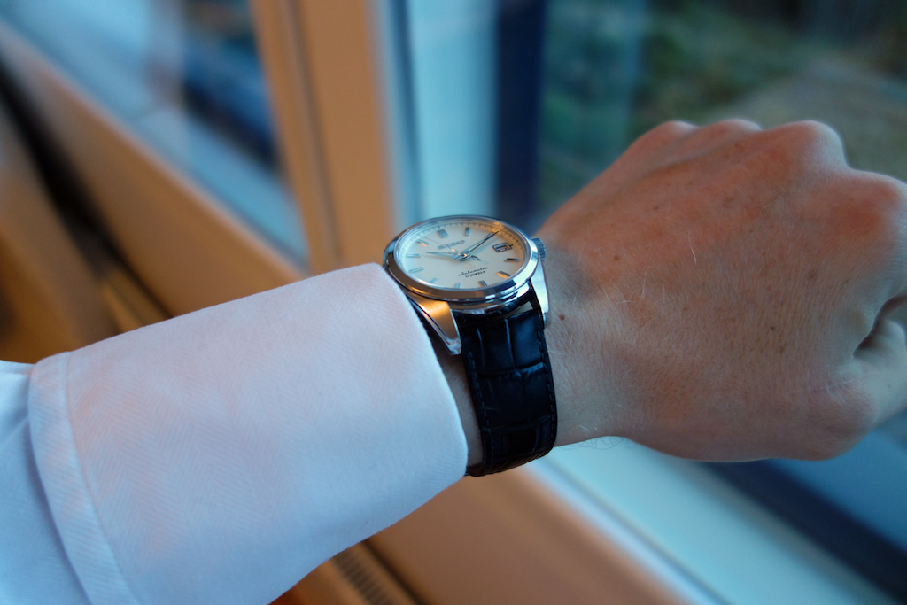 Vastaus oli myöntävä. Hän siis halusi itsekin kapearanteisena tietää, mikä kelloni (Stowa Flieger 6498 mallista oli kyse) halkaisija on, koska haluaisi ostaa kellon, joka on enintään suunnilleen sen kokoinen kuin minunkin kelloni. No kerroin Stowan olevan 41 mm ja välillä ranteessa olevan Seikon 38 mm.