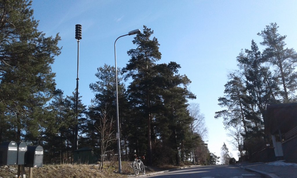 Koska se ei ollut tukiasermamasto, sen täytyi olla väestöhälytin ja väestöhälyttimet löytää kaupungin palvelukartalta. Ei vaineskaan: Kalliotie sattui olemaan tuttu paikka jo niiltä ajoilta jolloin lenkkitossuihin meni yhtä paljon rahaa vuodessa kuin renkaisiin ja kulutusosiin nykyään; siellä käytiin kerran viikossa tekemässä italialaisen treeniohjelman mukaisia lyhyitä mäkivetoja, Kalliotie ylös ja Törmätie alas. Olen tämän uuden pyöräilyelämänikin aikana pari kertaa erehtynyt kiusaamaan siellä itseäni, mutten sentään vetotreeneihin ole ruvennut.