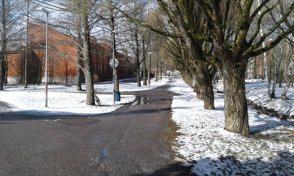Muuten ihmetyttää hiukan tämmöinen lievän pysähtyneisyyden tuntu pääkaupunkiseudun kuvarasteissa. Espoossakaan ei ole tavanomainen vauhti päällä. Kuitenkin ajokelejä on, nastarenkaista on päästy eroon, sepelit suurimmalta osin siivottu, aurinko laskee vasta kahdeksalta eikä vallitsevassa tilanteessa ole mitään esteitä pyöräilylle yksin tai kaksin, pikemminkin lisäsyitä.