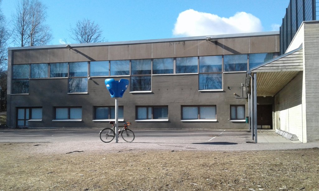 Höh kun olen tiennyt ton rastin sijainnin koko tän ajan, mutta en vaan ole ehtinyt tai ei ole tullut suunnattua tuonne. Monta vuotta osui toisinaan duunireitille kun tiksistä poljin keskustaan. Koirien liukumiinoja piti joskus pujotella vaikka koiruuskielto on ollut jo todella pitkään. :D Niin ja toi kuvan rakennus on peruskoulu.