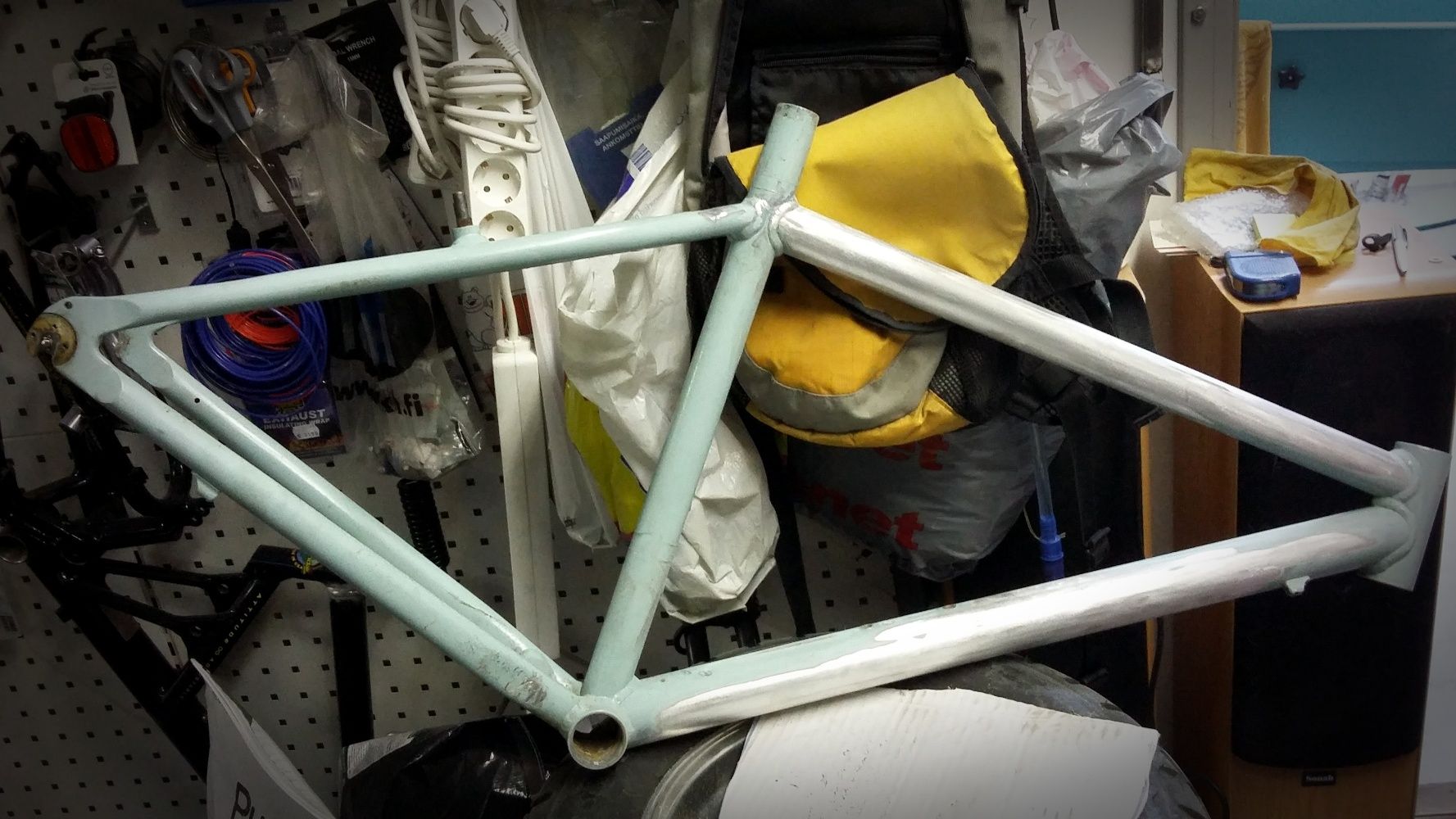 Koitin irrotella tarroja nätisti mutta eihän ne mihinkään lähteny niin koneella kokonaan pois ja samalla pintojen siistiminen muutenkin. Tarkotus oli sitten puhalluttaa ja jauhemaalata runko mutta hinnan painuessa reiluun sataseen, aattelin että suihkitaan märkämaalilla. Tällä hetkellä ei oo mahollisuutta näppärästi oikeasti ruiskumaalata niin päätin kokeilla spray-versiolla