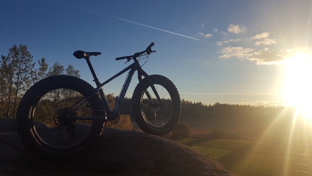 Vuokraratsun kunto vaan ei ollut mikään hyvä, mutta valinnan varaa sillä hetkellä ei juurikaan ollut. Vaikka takana oli HüDü ja edessä Floateri, ei pyörä rullannut yhtään, meno oli pahimmillaan kuin tervassa olisi ajanut. Sisurireita oli ainakin vaihdettu toiseen päähän, kun venttiilit oli eriparia. Ohjauslaakerissa oli väljää kun hain pyörän, jonka tosin itse kiristelin heti siinä tiskillä, takajarrussa oli jotain häikkää - todennäköisesti ilmattava ja vaihteetkaan ei toiminut ihan kunnolla ennen kuin itse säädin niitä. Lisäksi ketjut oli aivan kuivat, oli pakko käydä laittamassa erikseen voitelua niihin vuokraamolla. Jos olisin kokeillut ekaa kertaa fatbikeä tuolla, olisin ihmetellyt pyöristä käynnissä olevaa hypeä. Ajettavan alustan vaikutus korostuu moninkertaisesta painavilla sisureilla ja jos ei ole täyttä luottoa kalustoon muutenkaan, ei se ajo ole ihan sitä mitä pitäisi. Sen verran kaukana oli vuokrapyörä omasta. Sääli ettei vuokrakalustosta pidetä oikeasti kunnolla huolta. Tottakai ne kuluu käytössä, mutta kun asiakas hakee pyörää, ei siinä saisi olla mitään tuollaisia säädön puutteesta johtuvia vikoja /ongelmia. Ongelmista huolimatta, ketju oli kireällä ja matka eteni.