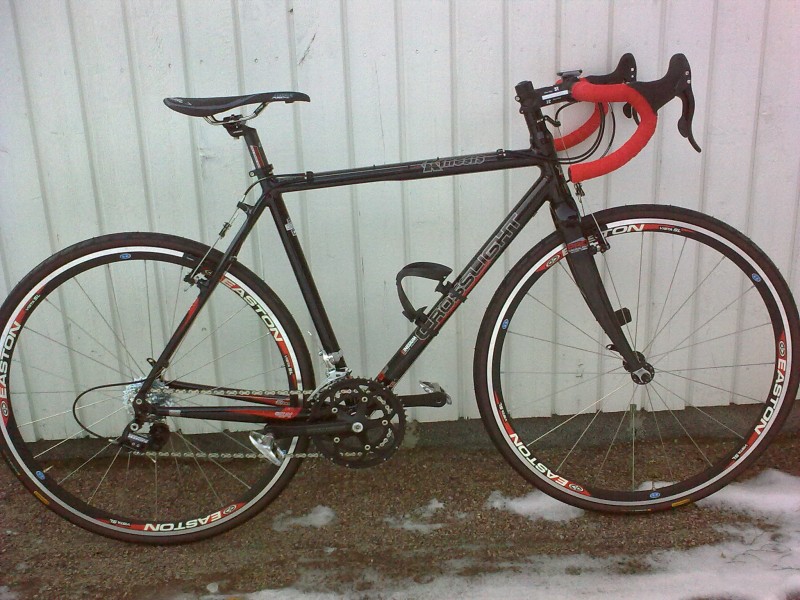 Sain vihdoin kuvankin pyörästä. Satula, tanko ym.osat säädetään kohdalleen keväämmällä, kunhan kuski lumien kadottua pääsee koeajamaan.