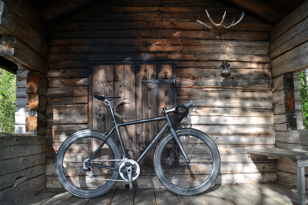 JohannesP:llä hieno setti pyöriä, etenkin Colnago. Ajan patinoima hirsiseinäkin näyttää hienolta:cool:.