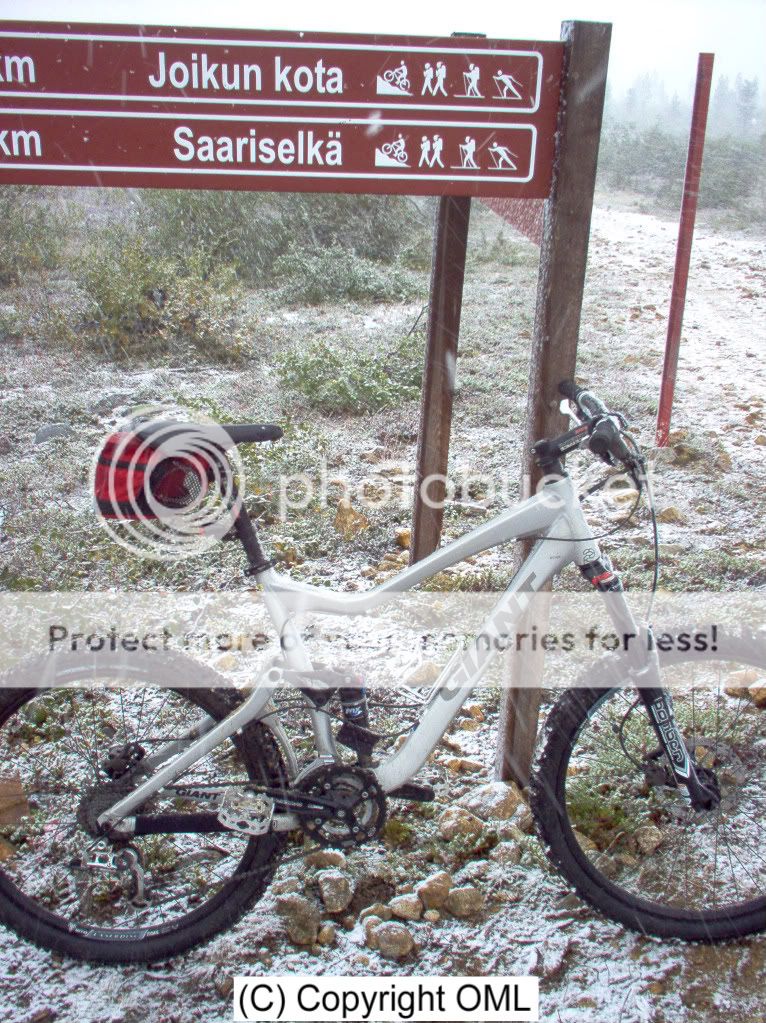 Syyskuussa oltiin taas Saariselällä maastopyöräilemässä. Mukavasti tuli kilometrejä. Kulmakurun lenkki on aina yhtä haastava Tolosjoen ylityksineen. Tänä syksynä vesi oli alhaalla joten toinen ylitys meni ajamalla. Vuosi sitten kävimme vielä Kopsusjärvelläkin mutta nyt ajeltiin Ruijanpolkua Sompiojärvelle päin. Pääasiassa ollaan ajeltu Dominicin aikoinaan merkkaamia reittejä. http://i489.photobucket.com/albums/r...PI20080013.jpg