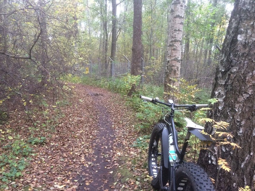 :rolleyes:Kyllä tuollakin löytyy maastopyörälle ajettavaa, vaikka pitkoksilla onkin yritetty pilata eikä tuossa tule kuin pari kilsaa asfalttia edelliseltä polulta.