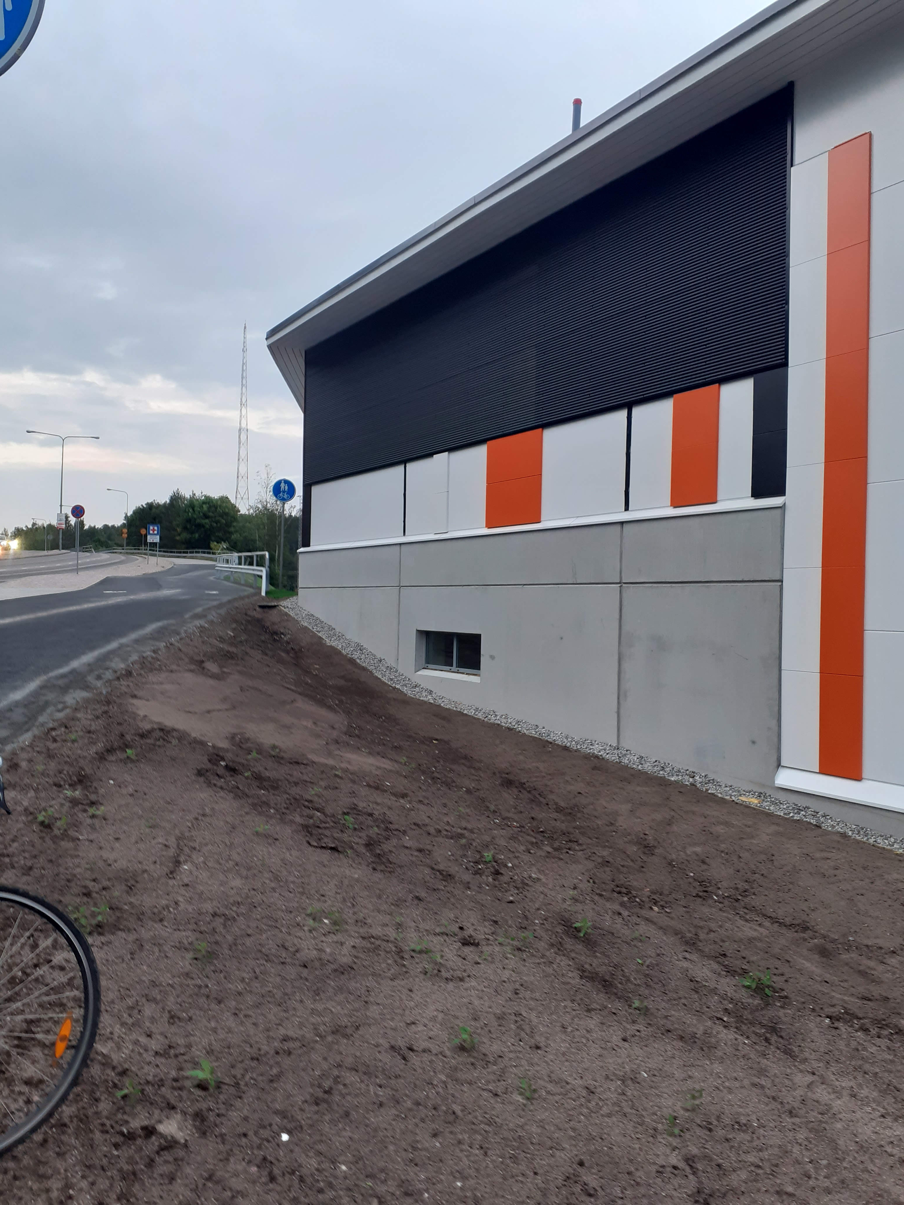 Mä kun ajattelin että toi punainen valo olisi ollut hyvä vinkki, ei täällä nyt kovin paljon punaisella valolla valaistuja rakennuksia ole. Tosin tässäkin valojen värit vaihtuvat samaan tapaan kuin radiomastoissa. Kaikki ei tietty tämän ohi ole pimeässä ajaneet ja huomanneet noita valoja, tämä on kyllä melko näkyvällä paikalla ison tien lähellä joskin kuvanottopaikalle joutuu hieman pujottelemaan.