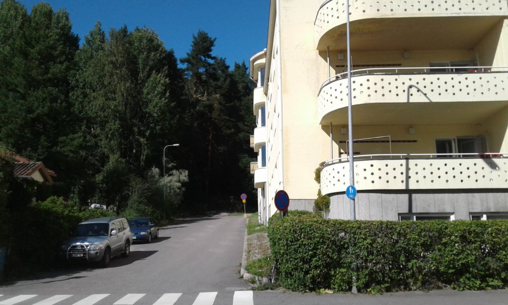 Olen käväissyt StreetViewn avulla vilkaisemassa melko monen mahdolliseksi arvelemani rakennuksen kadunpuoleista julkisivua enkä kovin paljon liioittele jos sanon tutkineeni niin Hämeenlinnantien kuin Mannerheiminkadun kuin pääradan ja satamaradankin kummatkin puolet melkoisen tarkkaan.