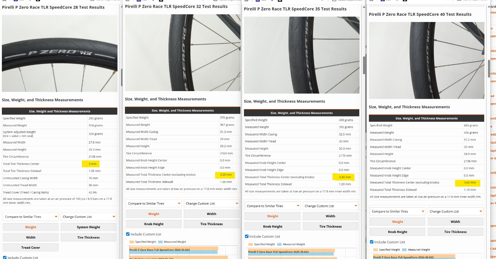 Tein täysin ETRTO-guidelinen vastaisen eksperimentin, ja laitoin kokeeksi 32mm sisäleveille gravel-kiekoille 35mm GP5k AS TR:t. Mitattuna 38,6mm todellinen leveys, eli vajaa 1,5mm kapeampi kuin kehä.