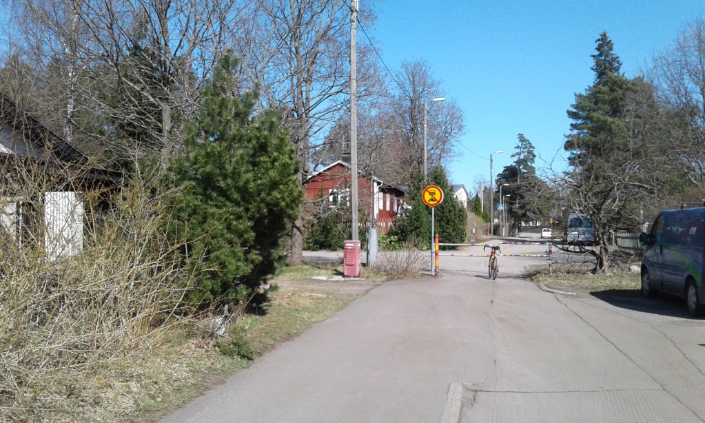 Olen niin vanha että muistan jotenkin ajan kun tuosta vielä ajettiin silloin uudelle Lahdenväylälle (koska Myllymestarintietä ja Kehä I:n liittymää ei vielä ollut). Sen jälkeen kun tie suljettiin sillä kulki talvisin tavattoman suosittu edestakainen latu, reilu kilometri Myllytuvantien päästä tuolle aidalle. Sille tultiin hiihtämään kauempaakin, mutta Latokartanon rakentaminen teki siitä tietenkin lopun.