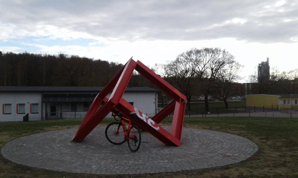 Ai niin, pyöräni oli sitä mieltä että rasti oli ehdottomasti haettava, vaikka yritin selittää että tällainen rasti haetaan kyllä nopeasti. Ilmeisesti väri miellytti niin paljon.