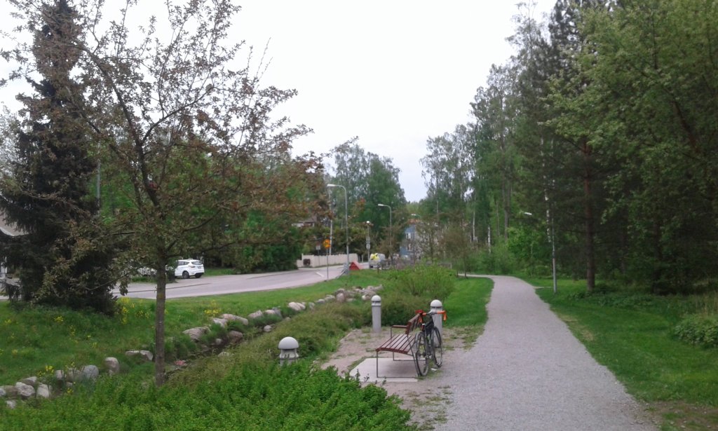 Uudessa on toinen puro, toisenlaiset sillat ja eri väriä oleva penkki.