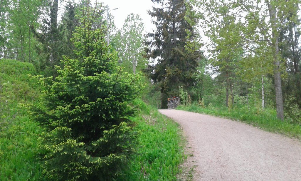 Kumma ettei tämä mennyt heti. Silta nimettömän(?) puron yli Hallainvuoren lähivirkistysalueella. Rasti 2011.