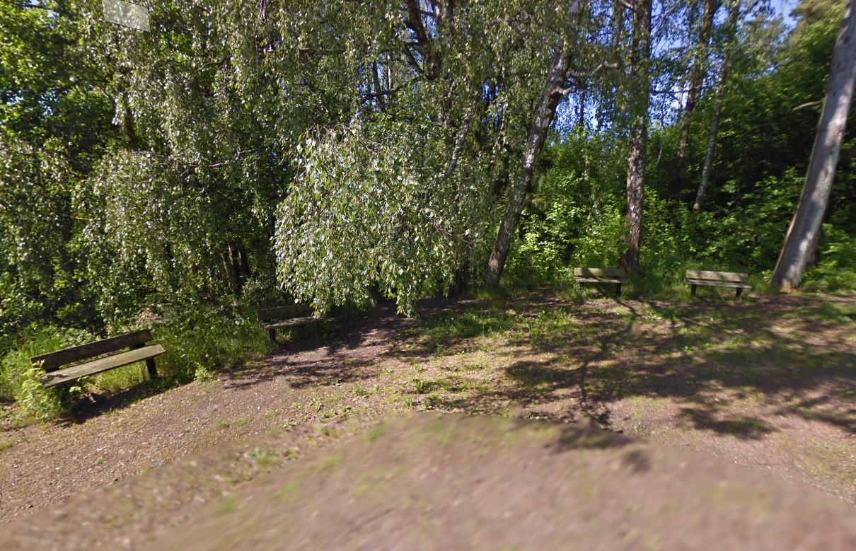 StreetView'n kuvauksen aikaan penkkejä on ollut peräti 4 kappaletta, niinkin keskeisellä paikalla ollaan. Ja nuo kannot vielä puina.