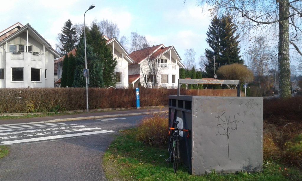 Rasti 2079 löytyi sekin Vartsikasta, Itäväylän toiselta puolelta. Viikingintien ja Uiskotien kulmauksen olisi löytänyt myös hakemalla kartan paperinkeräyspisteistä tai kirjastoauton pysäkeistä, mutta minulle paikka oli jostain kumman syystä selvä, vaikken tuosta ole kovin monta kertaa tainnut ajaa.