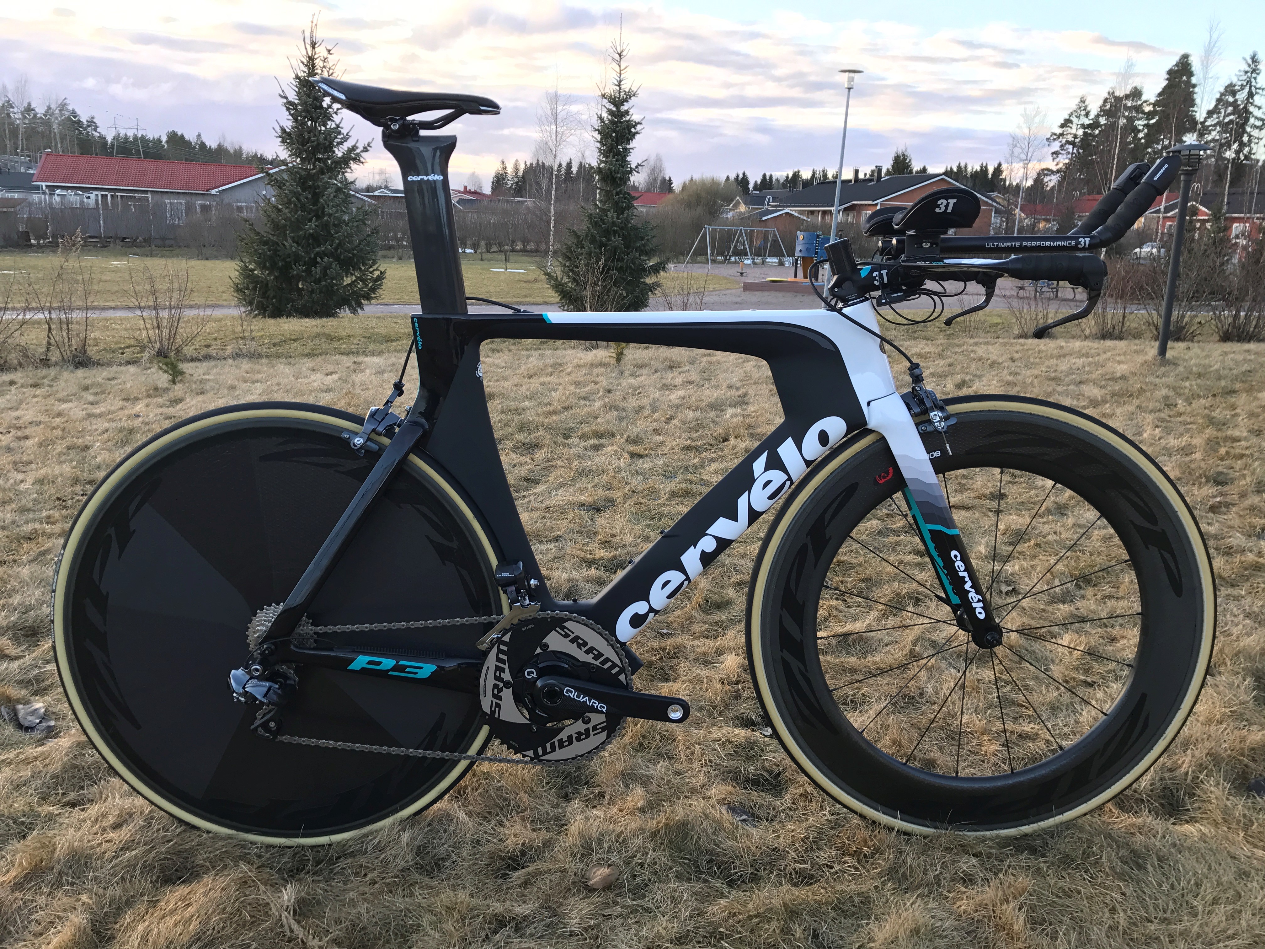 Täytyy kehua Larunpyörän ammattitaitoa. En olisi uskaltanut ottaa noin pientä kokoa Cervelosta, mutta niin vain Riston suositus osoittautui oikeaksi. Lisäksi hänen tekemänsä Bikefit oli oikein perusteellinen ja pätevä homma oikean aika-ajoasennon hakemiseen.