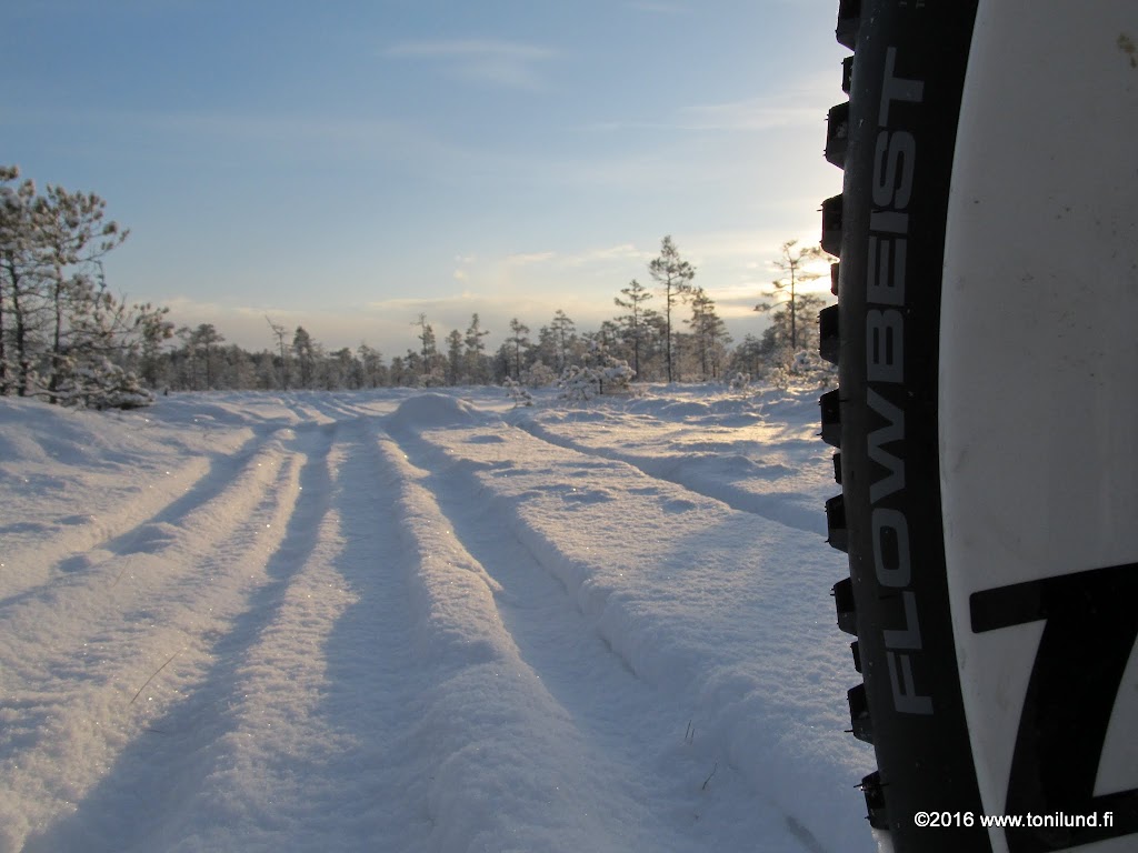 Paineita renkaista pois reilusti ja menoksi... A vot, se typerä hymy palasi naamalle ja pyörä eteni ja meno maistui! Oli koskematonta lunta, kelkanjälkiä ja kaikkea muuta... Eli fiilistelemään päästiin ja alkoi päivä hämärtymään.http://uploads.tapatalk-cdn.com/2016...cfe5b21b03.jpg