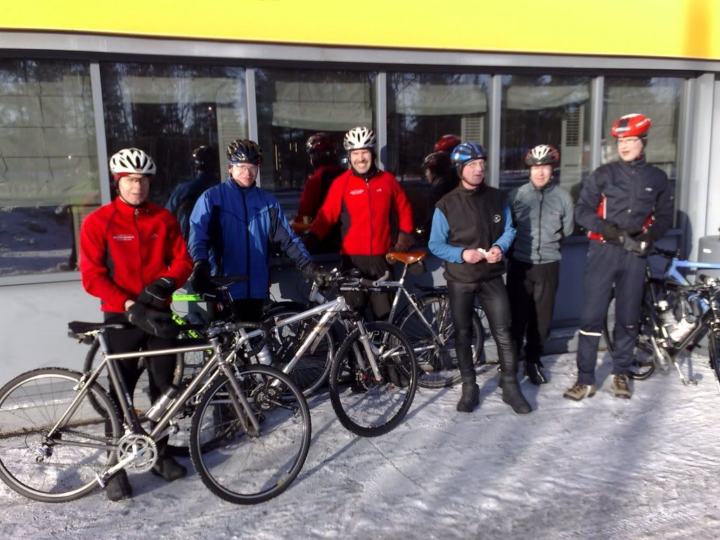Itse pääsin myös pidemmän jatkuneen sairastelun jälkeen sunnuntaina pyöräilemään ja kuinkas sattuikaan ajoin samaa reittiä kuin 08-lenkki Haapalehdosta Maikkulaan ja siitä Iinatin kautta Kaakkuriin. Sitten reitit erkanivat ja itse ajoin Perävainio-Limigantulli-Kauppatori-Tuira-Kuivasjärvi -reittiä kottiin. Ja sitten hehkutukseen: oli kyllä niin maan penteleen mahtavaa pyöräillä kun kamppeet ovat kunnossa ja keli oli niin kuin sunnuntaina aamupäivällä oli. Uudet nastarenkaat Trekin alla ja sopivasti vaatetusta päällä kun oli niin olisi melkein voinut ajaa vaikka kuinka kauan. Pieni miinus hommasta tulee kun kengät ei ole ihan talvilämpimät ja varpaat olivat suhteellisen kohmeessa kun kotiin saavuin. Ensi kerralla pitää keksiä jotain konstia tämän asian hoitamiseksi. Ajattelin laittaa sanomalehden kengän ja kengänsuojuksen väliin :p