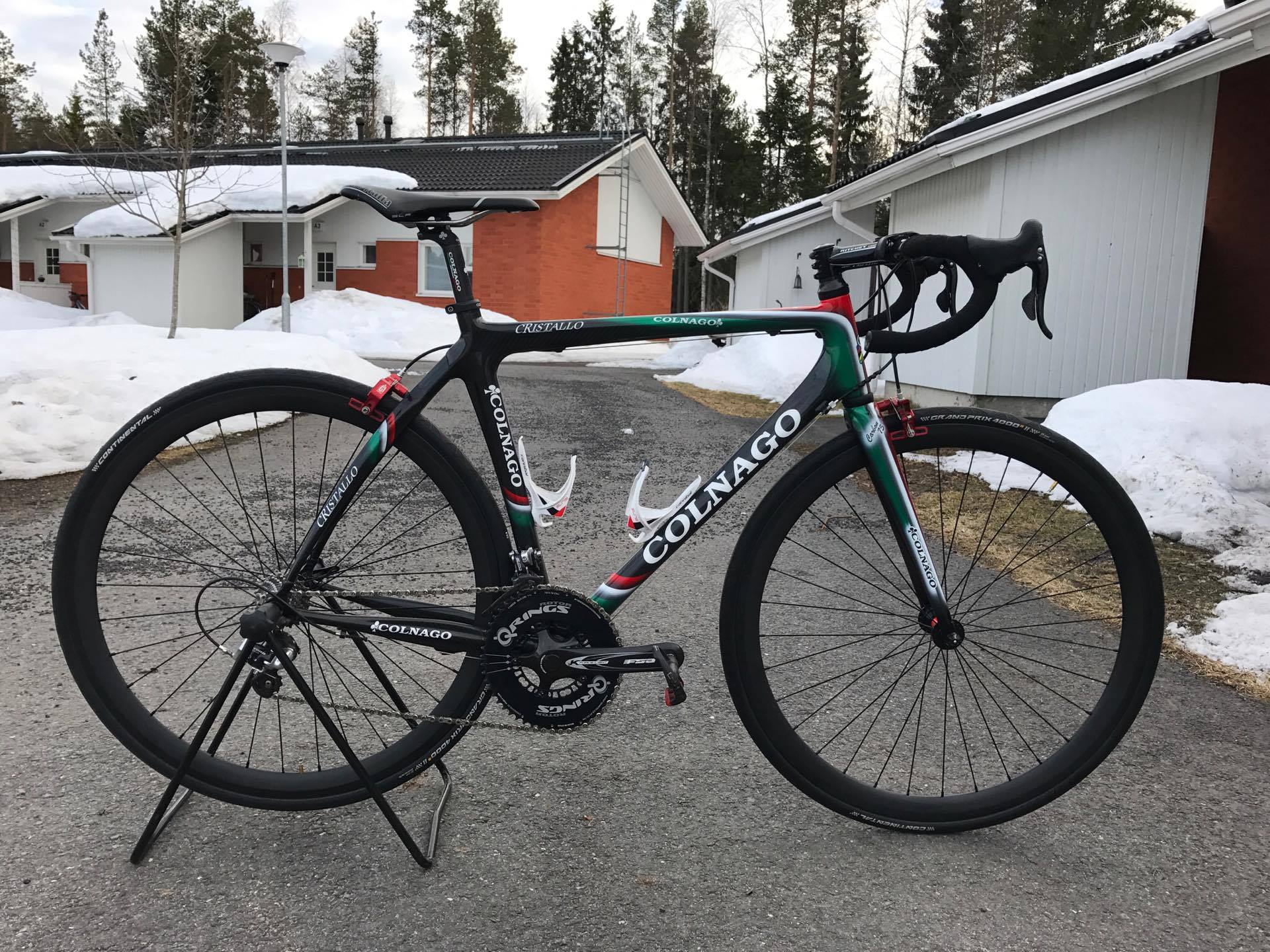 En ole mikään kauhea italopyöräfani tai "ikonisten", "legendaaristen" ja "oikeiden" pyörämerkkien ihailija enkä mitään sinne päin, mutta jotenkin ymmärrän Colnago-harrastajia hyvin pitkälle. Ei tuohonkaan voi oikeastaan muuta kuin kuiskaamalla sanoa: "Colnago", "Cristallo" ja "Tricolore" - ja silti tuo on varmasti aivan mainio ajopyörä eikä mikään koriste-esine.