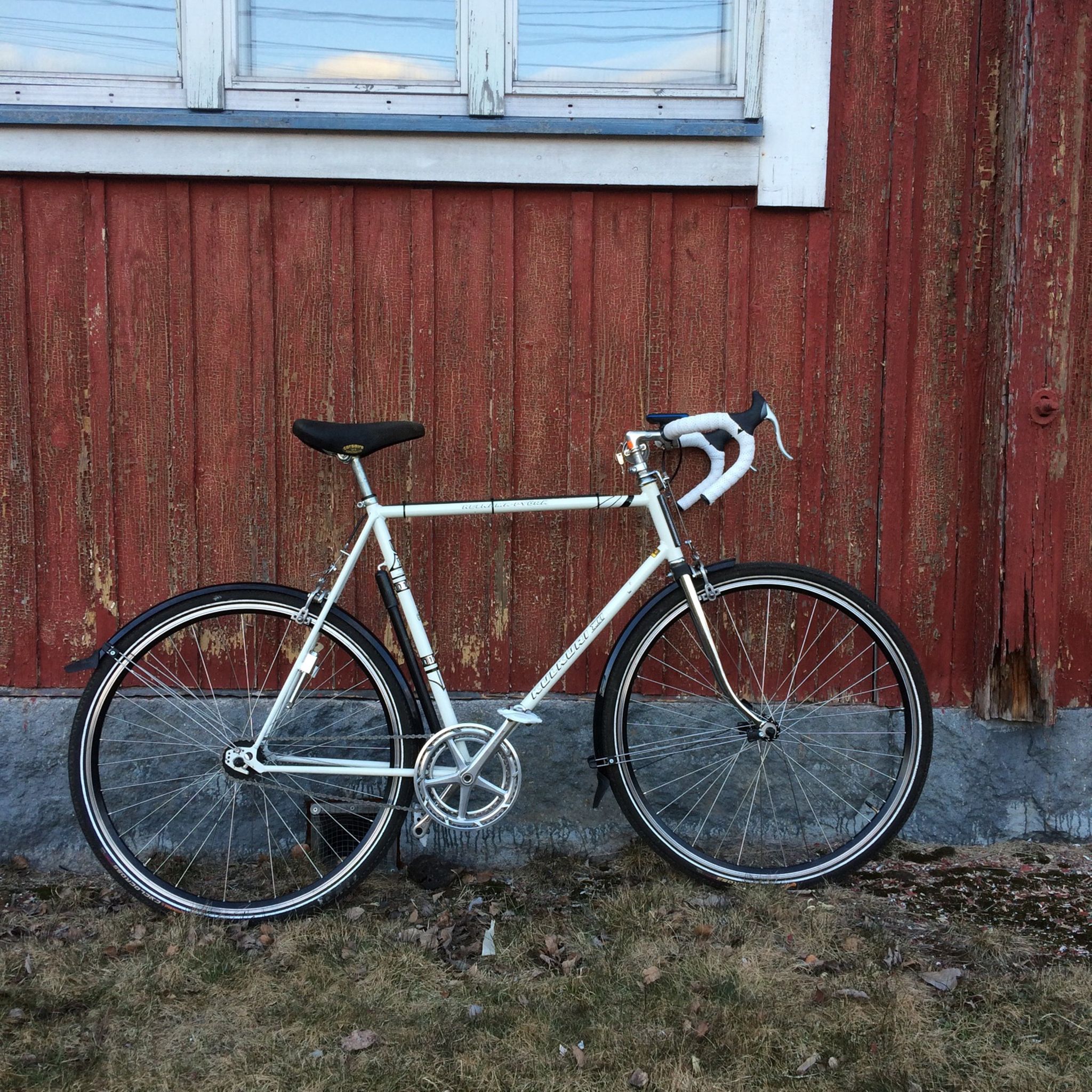 Rakentelin vuoden 1980 Kulkurista työmatkasinkulan cyclocross-henkeen. Tekniikka on kokonaan huollettu, kahvat uutta Shimano 105 ja lokasuojat SKS Commuter. Välityksenä työmatka-ajoon sopiva 42/21. Vanhalle fillarille uusi elämä :)