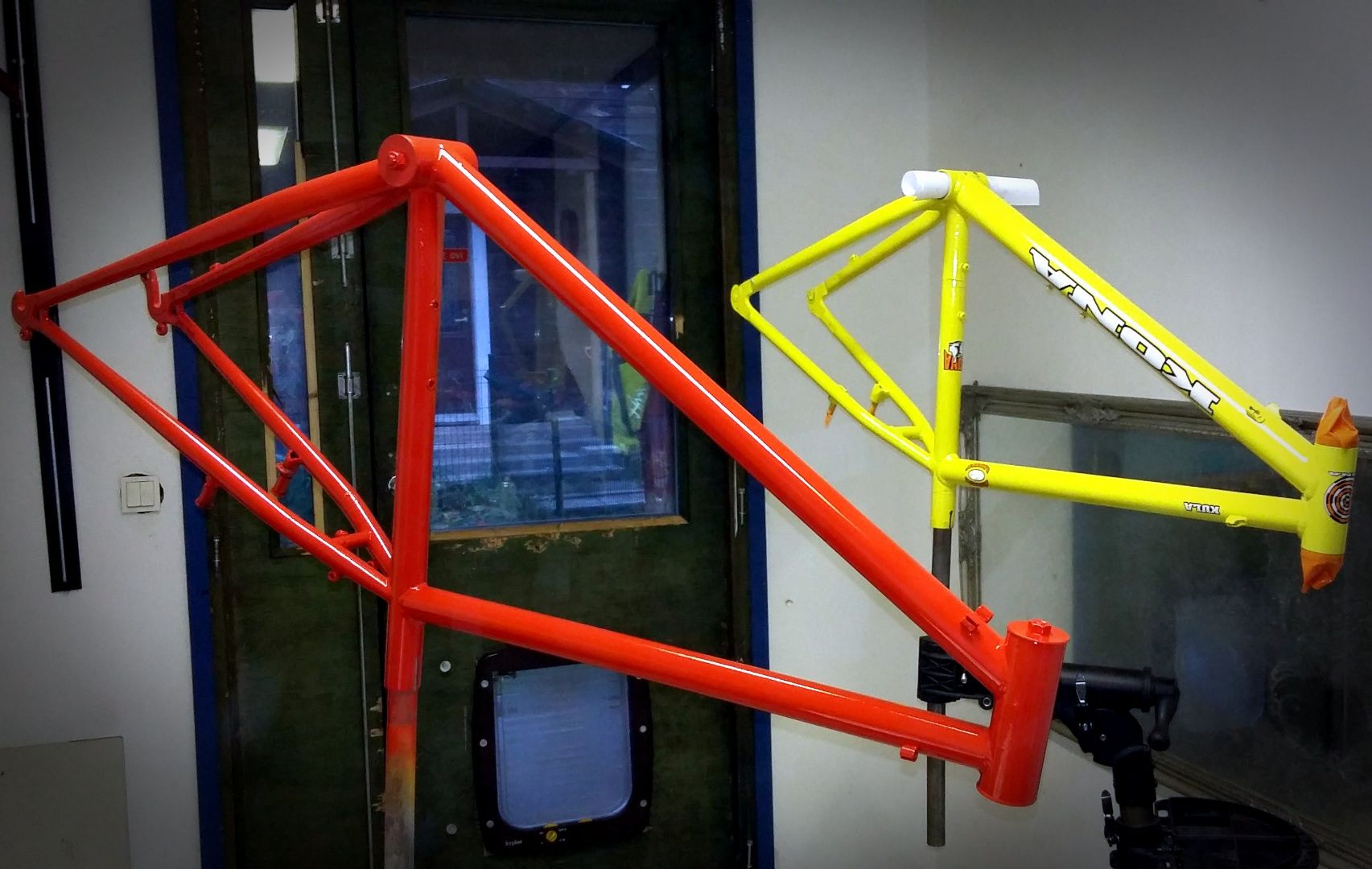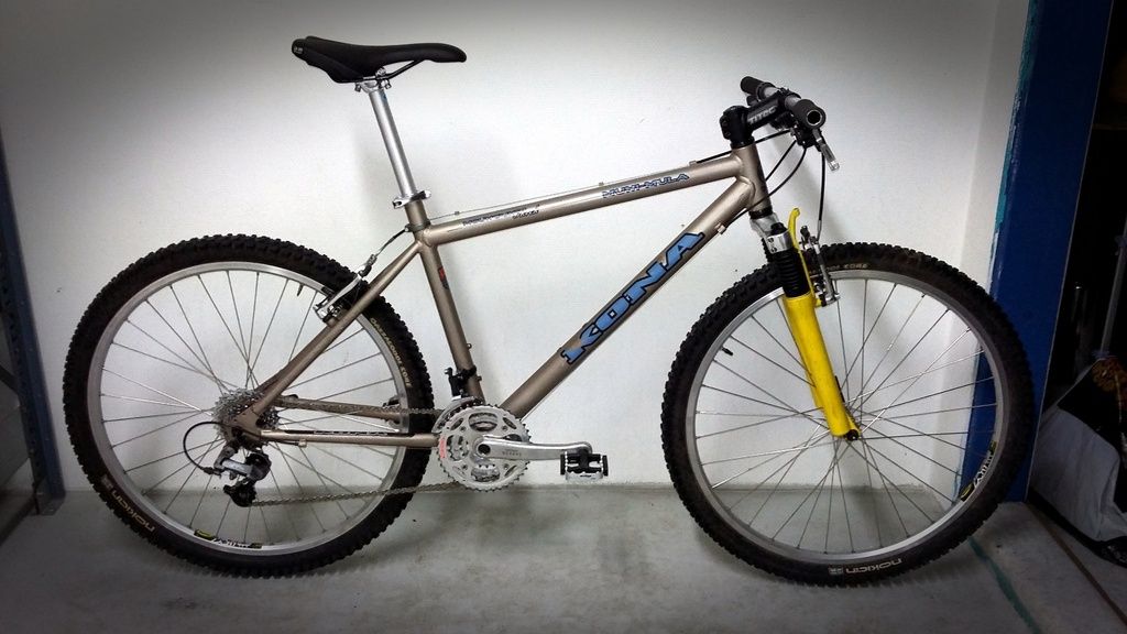 Syksyllä tuli pelastettua paikallisesta kierrätyskeskuksesta tuommonen -95 Kona Koa. Vähän aikaa tallissa pyörimistä ja projekti visioitui muodin mukaisesti monstercrossiksi. Hiekkapuhalluksen kautta hiiren harmaa pulveri pintaan ja osat kiinni. Vaihdeosat on vähän tuoreempaa mallia kun en saanu hyllyssä olevia RSX:iä kohtuudella toimimaan. Muutama uus Kona-prokkis on myös suunnitteilla...
