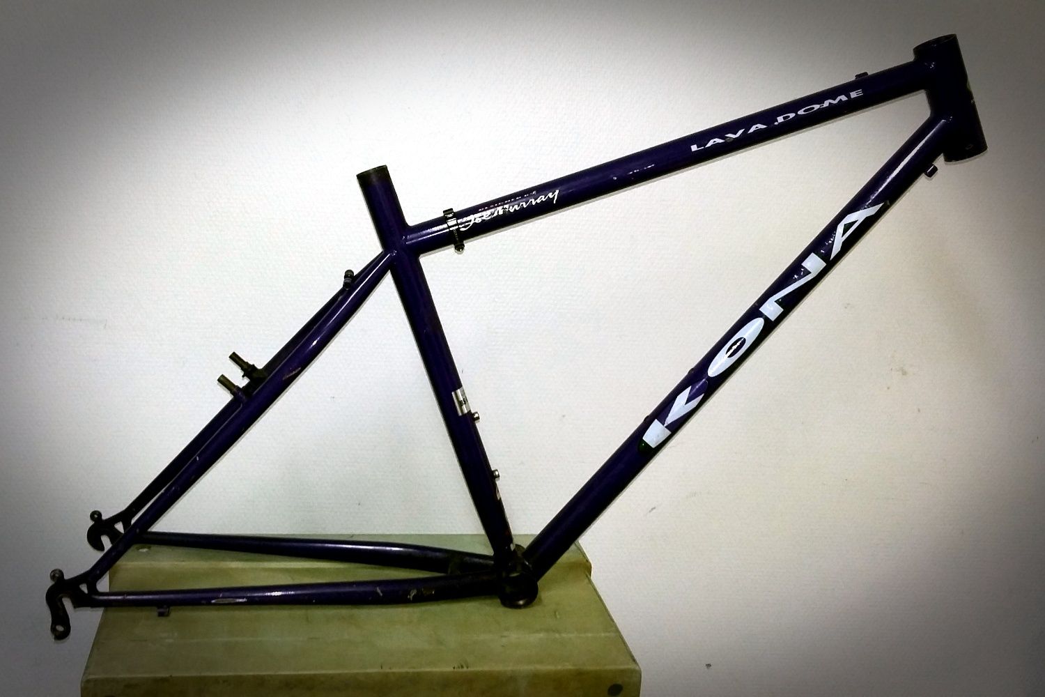 Nyt saapui vaimon tulevan pyörän aihio Briteistä, -92 Lava Dome. Yleis ilme oli kohtuu siisti, mutta lähempi tarkastelu paljasti tosi rujossa kunnossa olevan bb:n alustan ja chainstayt.