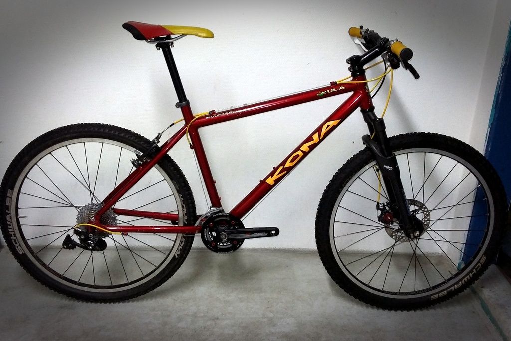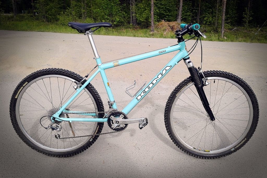 Täysin orginaali Kona n omia renkaita myöten. Pyörä taisi tänään menettää hyvässä 18-v iässä polkupoikuutensa, vaiko toisinpäin.