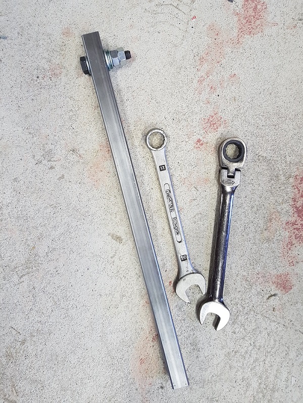 20x20 putkea, M10x50mm ruuvi (1mm kierre), kaksi mutteria, aluslevyjä sopiva määrä.