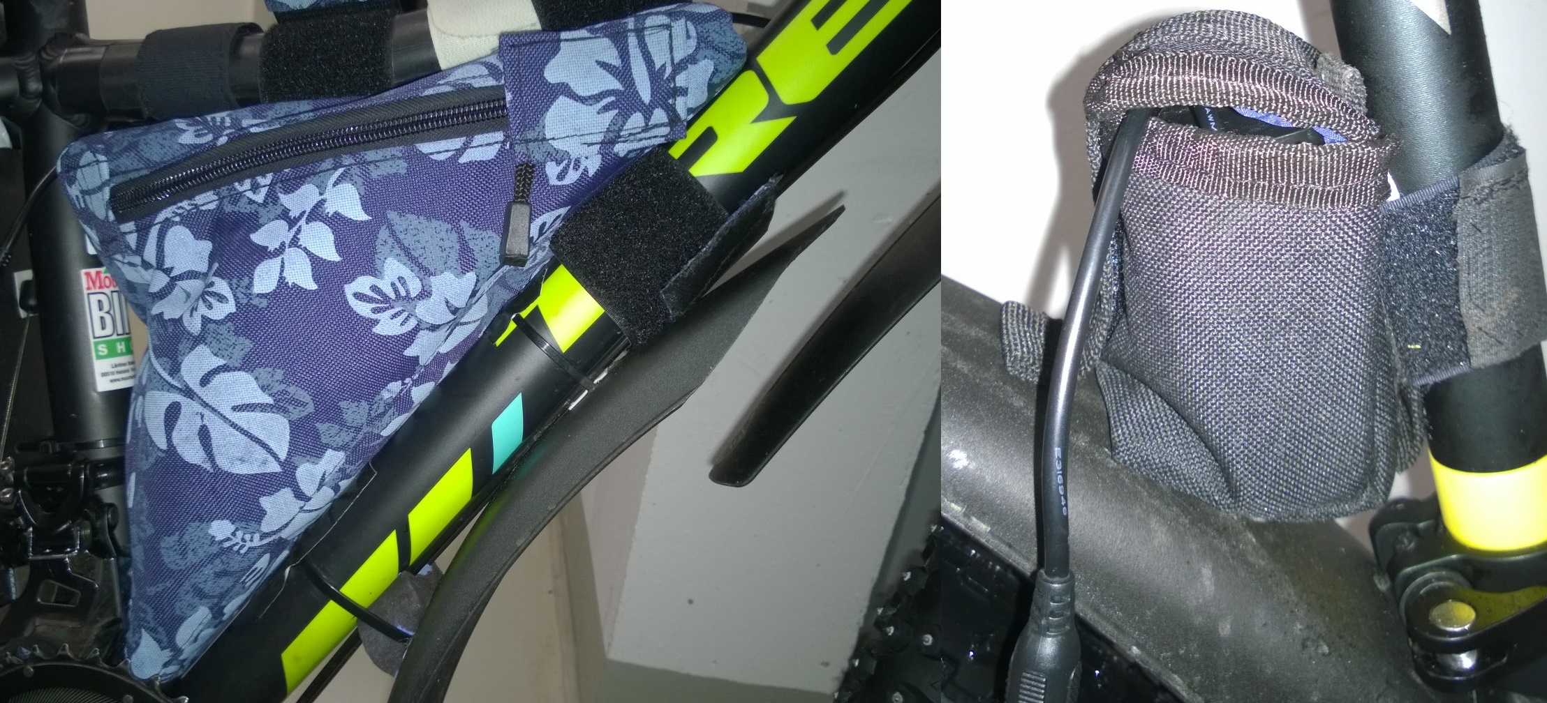 Topeakin ( https://www.bike24.com/1.php?content=8;product=1765;menu=1000,5,79;mid%5B 48%5D=1;pgc%5B5678%5D=5681) telineeseen värkkäsin orret pienille sivulaukuille