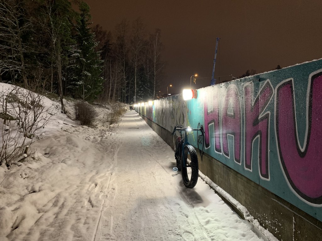 Tämän läpi ei taida juuri pyörälenkit kulkea, mutta kuvassa kauempana olevan pään puolelta alikulku melko usein polkienkin ohitetaan.