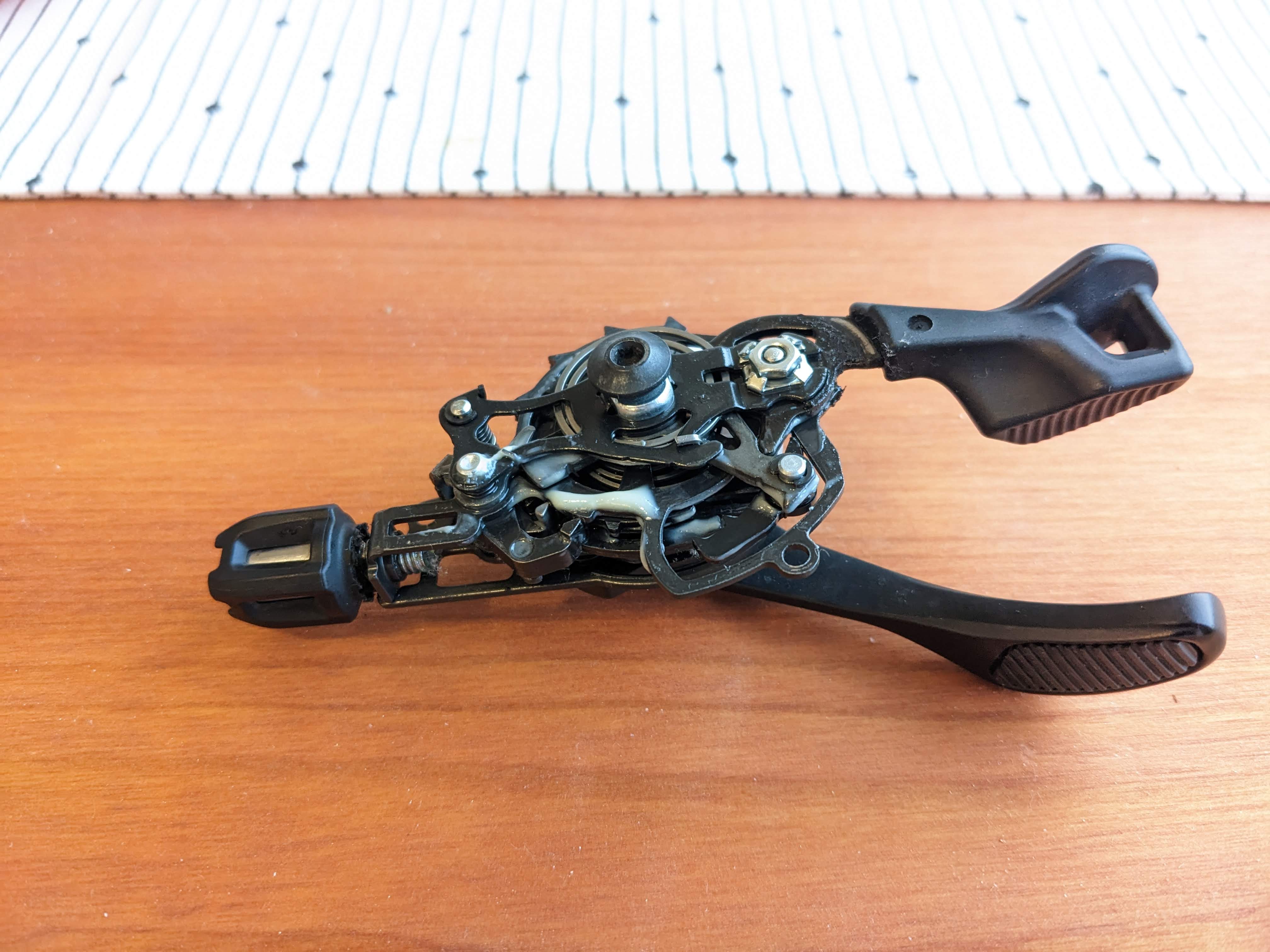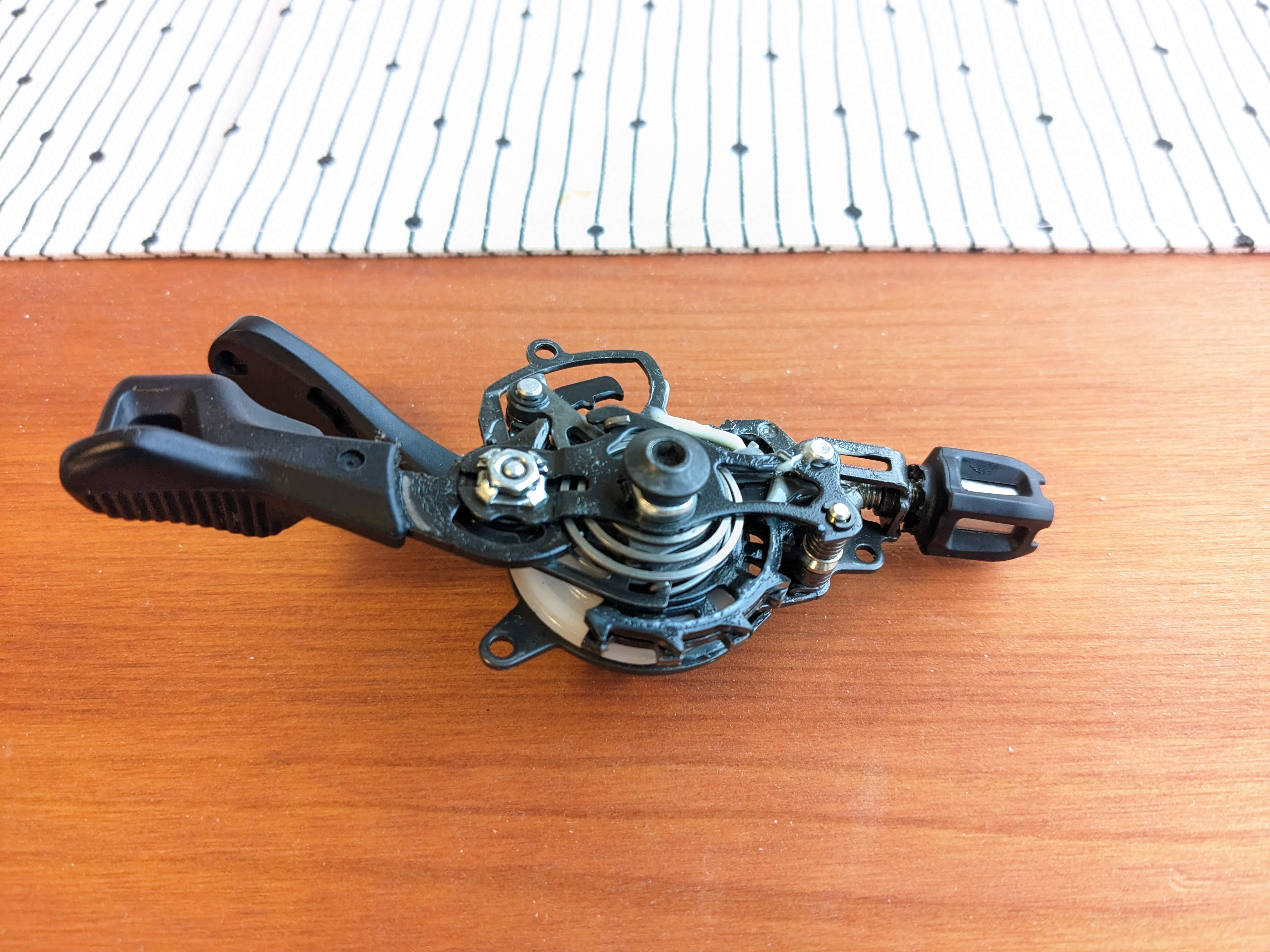 Ehdin jo kotimatkalla ostaa uuden. Avasin kotona tuon liipasimen enkä oikein pääse kärryille mikä tuossa tarkalleen on vikana, niin monimutkainen tuo mekanismi sisältä on. Eli siis tarkemmin vielä. Kun vipu raskaimmalla vaihteella, se antaa vaihtaa 4 vaihdetta "ylöspäin", kuitenkin niin, että pykälät häviävät aina yhden kerraallaan, kun mennään ylöspäin pakalla. Joku palautusjousi tuossa kynsimekanismissa varmaan on syyllinen mutta ilman kunnon räjäytyskuvaa aika vaikea tota on selvittää.