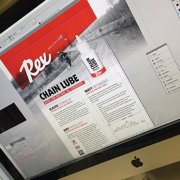 Niin, olen siis tuon Rexin ketjuöljyn kehittänyt ja uskon kyllä että tuo on hyvää ainetta. Me kun elämme suksivoiteista, niin kynnys tuoda pyöräilytuotteita on aika iso. Sen takia tuota on mietitty ja kehitetty paljon. Periaatteena tässä ja muissakin tuotteissa on, että tehdään parasta mahdollista.