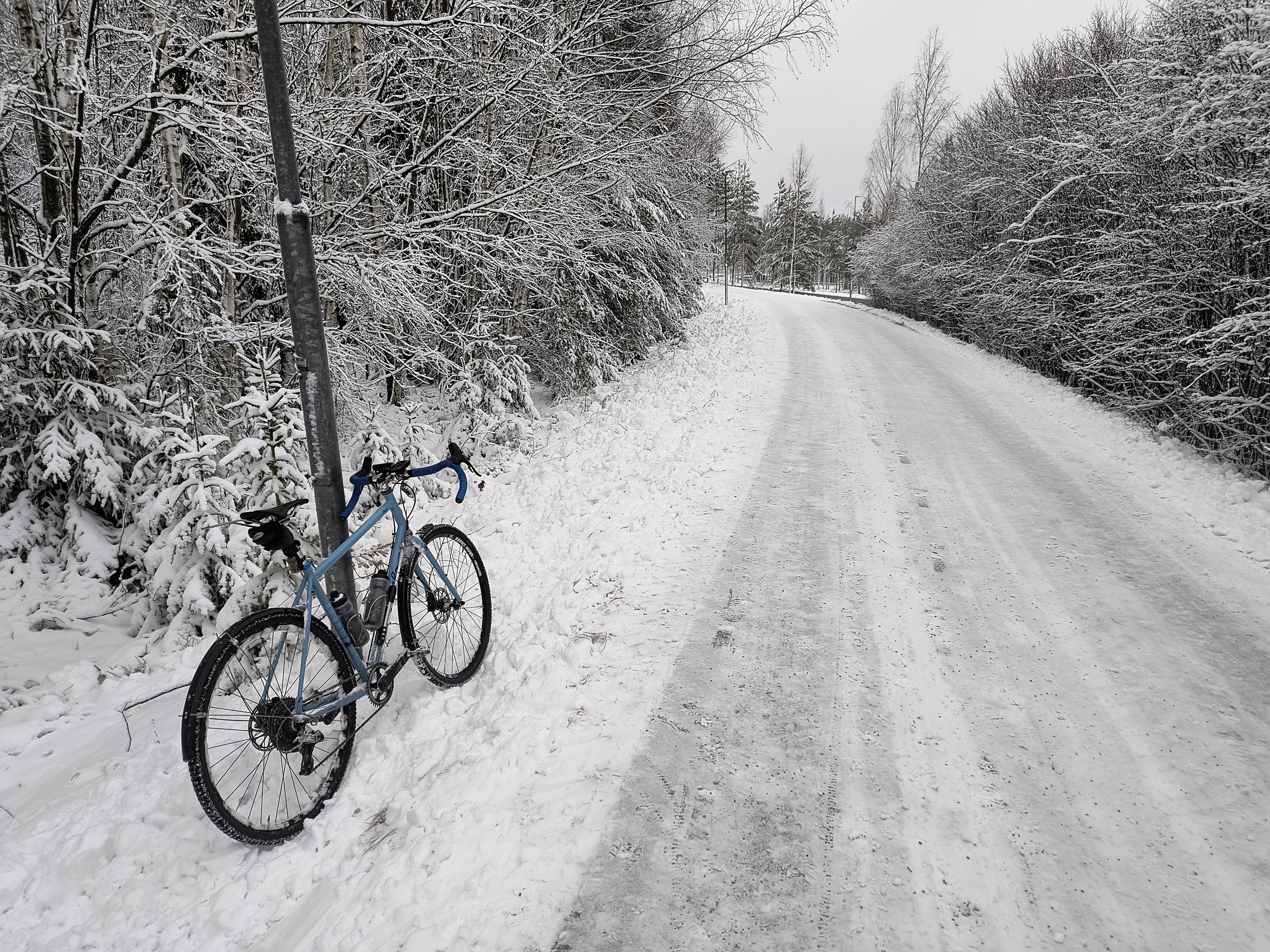 Järjetön määrä roiskittu sepeliä kuivalle asfaltille Kehä 3:n varteen, roiskittiin eilen päivällä sillä aamulla ei ollut. Kilinä vaan käy kun kivet kimpoilee runkoon ja tuntee kuinka terävät kivet silpoo rengasta, älyvapaata touhua. Varmuuden vuoksi huomista varten sinne lumen alle josta se aurauksen mukana lähtee pois, eli toisin sanoen täyttä resurssien ja rahan haaskausta. Tässä helsingissä himan ympärillä on tiet puhtaat niin uskaltaa kauppamatkalla kääntyä pyörällä ilman että täytyy varoa irtosoran aiheuttamaa pidon menetystä, mutta työmatkan sepelirunkku pilasi.