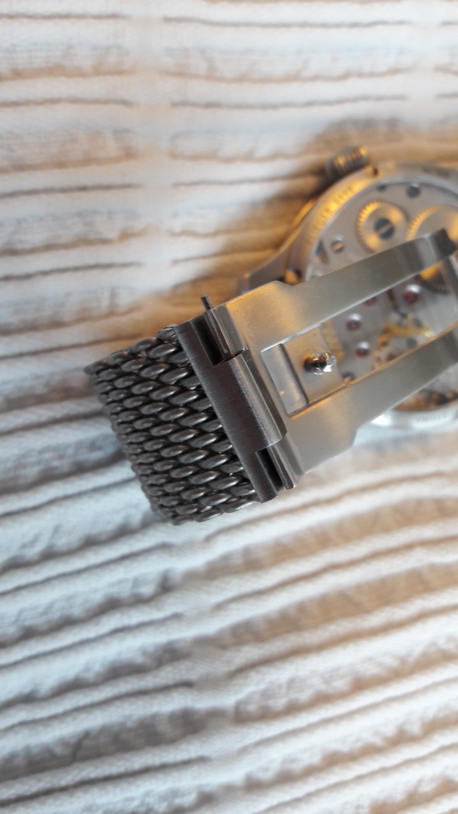 Mulle tuli eilen postissa Stowaan Milaneise-ranneke Stenhartilta. Kellon ulkoasu tuli hyvin erilaiseksi kuin nahkarannekkeella ja ihan kivalta tuo näyttää. Olisin laittanut kuvan yllä olevasta mielipiteestä huolimatta mutta palautukseen tuo menee. Pahin ongelma oli yksi ranneketta sen lukitusosan (clasp) ja sen varsinaisen rannekkeen välissä pitävä erittäin löysä kiinnitystappi. On niin löysä, että ranneketta käännellessä alkaa tappi tulemaan ulos ja on sen jälkeen kokonaan pois pelkillä sormilla helposti vedettävissä. Se kun lähtee irti itsestään yllättäen käytössä, niin kello tipahtaa ranteesta.