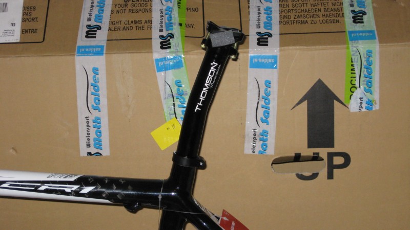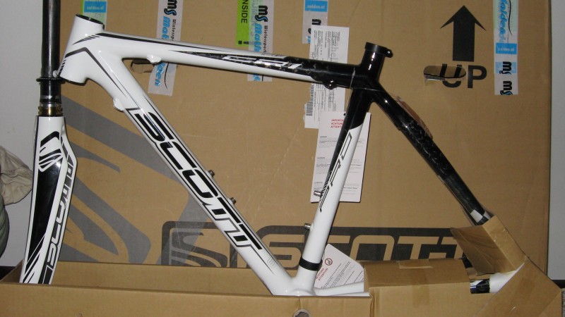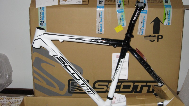 Joo olin iloisesti yllättynyt ,että laakerinkupit oli laitettu valmiiksi ja rungossa on vielä ketjunohjurikin kiinni. Tosin en ole vielä päättänyt otanko sen pois. Runko on kokoa XS eli 49. Pähkäilin pitkään S:n ja XS:n väliltä ja päädyin sitten pienempään. Runkoa en ole punninnut kun ei ole luotettavaa vaakaa ,mutta eiköhän sen kerkee vielä loppuviikosta.