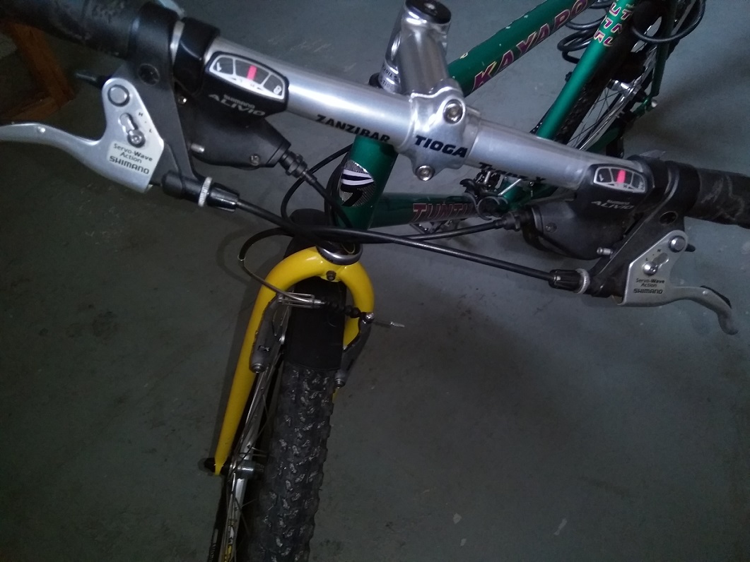 Kiitän valaisevista vastauksista. Selailin kuvia vanhoista Shimanoista minkä löysin, ja ei 1997 ole Aliviot olleet tuon näköiset. Vivut tuohon on siis tosiaan laitettu jälkeenpäin. Ohjainkannattimen pituus on kyllä aika huikea, ja sen tuntee ajossa. Pari senttiäkin lyhempi varmaan vaikuttaisi kummasti, enempää en ajoasennon takia lyhentäisi. Saa nyt nähdä, viitsiikö alkaa kovin paljon osia ostelemaan. Pitää totutella ensin tuohon ja katsoa minkä verran ajoa alkaa kertymään.