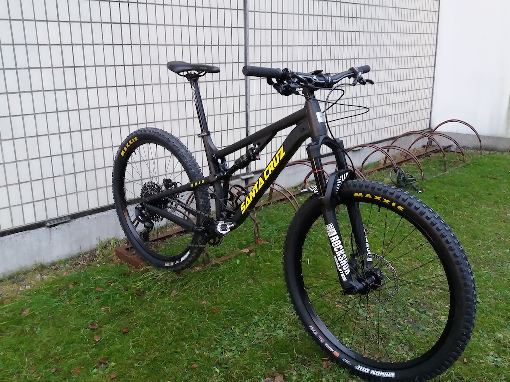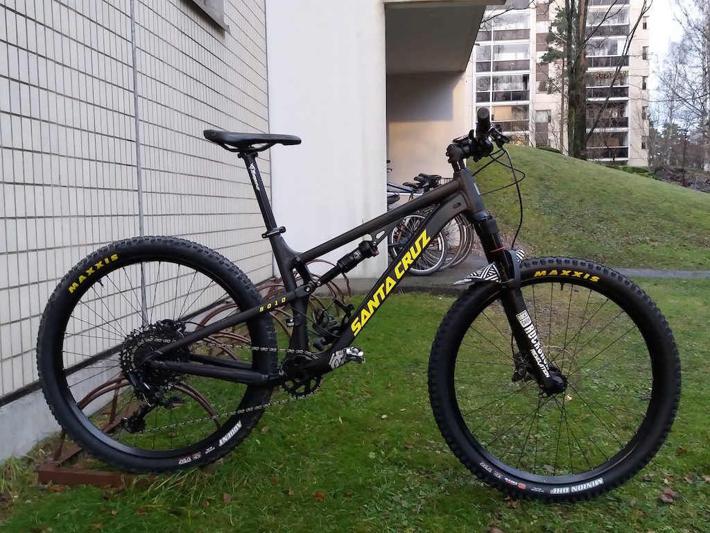 Kun vihdoin ja viimein oli vähän taukoa sateesta, pääsin ottamaan kuvia uusimmasta projektistani. Pyörä odottaa edelleen pääsyä tositoimiin. Kyse on siis itse kasattu 2017 SC 5010 Alu GX Eaglella ja 2018 RS Revelation RC keulalla. Kuvien kokoonpanossa 13,8 kg, eli ei mikään keijukainen