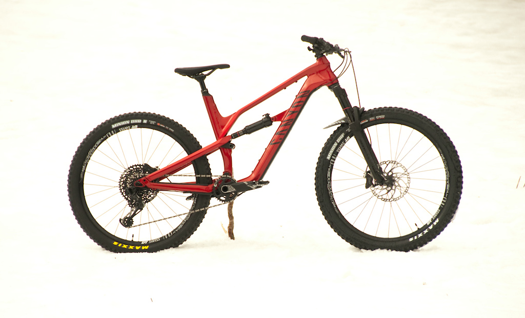 2018 Canyon Spectral AL, johon uutena päivitetty Sramin Guide R jarrujen tilalle Shimano Zeen pysäyttimet, Rekon 2.6 takarenkaan tilalle DHR II 2.6, sisärenkaiden sijaan litkut, eteen kuraläppä ja polkimina kokeillaan Nukeproofin Horizon lukkoja, joissa kuitenkin myös iso flättikehikko ympärillä.
