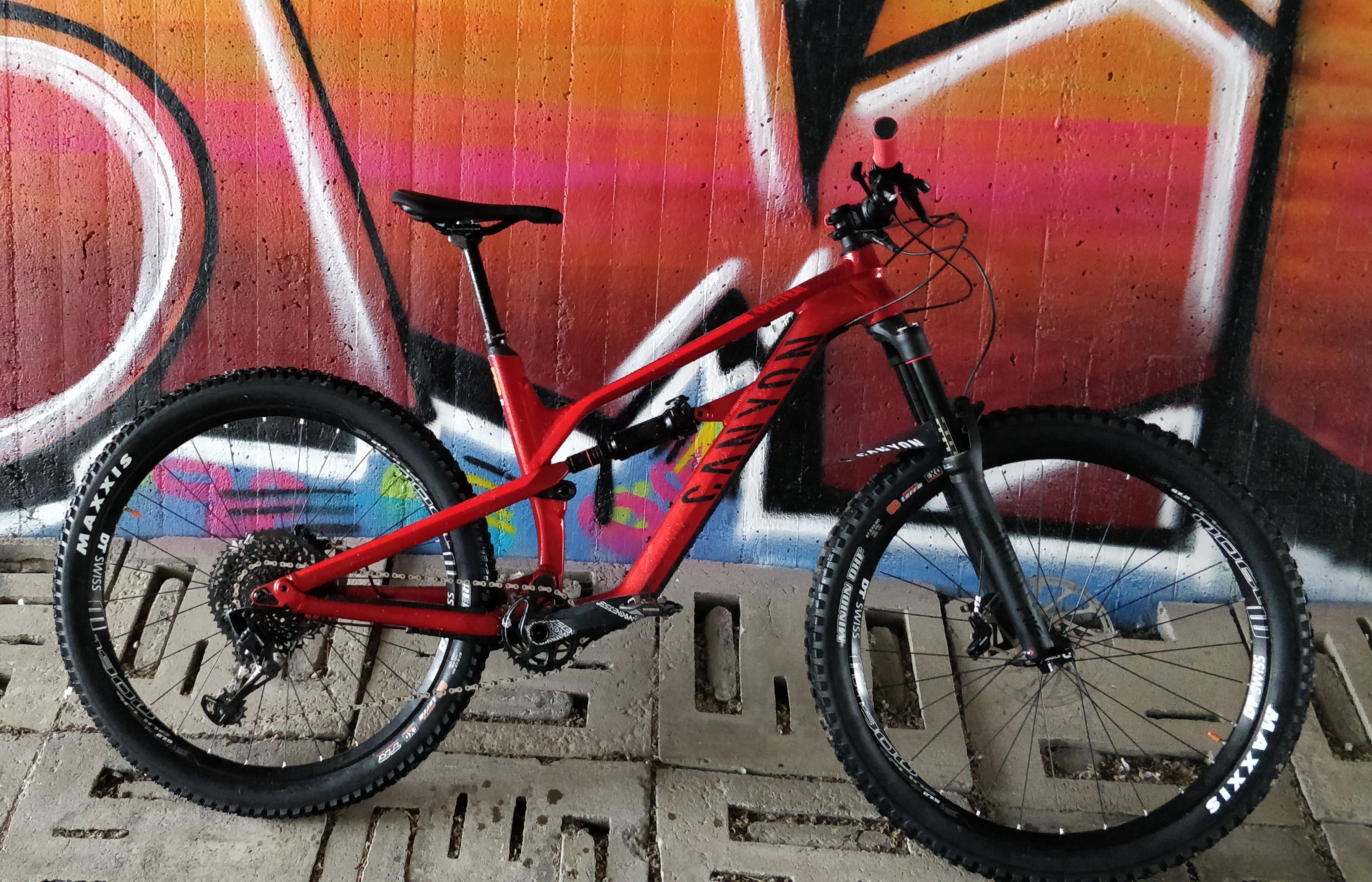 Commencal Meta V4 Ride Edition Black. Orkkis kiekot vaihtui Easton Heist 27 ja 24 rinkuloihin. Kotivaaka näytti painoksi 15kg ajokunnossa, ilman juomapulloa. Mukana siis varasisuri, multitool/pulloteline ja pumppu. Alle viidentoista menis varmaan vaihtamalla sisurit litkuihin. Valmistajan mukaan paino taisi olla n.14.8 kg.