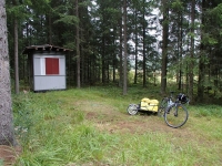 Oltais voitu lähteä menemäänkin... mutta sateet tulivat taas myöhemmin ja päätimme olla toisenkin yön tuvassa. Soolopyöräilijä pyörähti tuvalla, liekö foorumilaisia? Oli sellainen Usko Juntusen oloinen hemmo, muttei kuitenkaan hän.