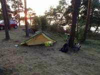 Matkalla koitettiin kattella leirin paikkoja monelta taholta... aina oli turhan ruovikkoinen ranta taikka muhkurainen alusta. Mentiin sitten vanhaan tuttuun...