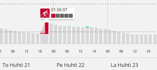 Sanoisin joo. Jos olen "erittäin rasittunut" -tilassa ei oikein irtoo. Aika nopeasti tuolta palautuu "Rasittuneeksi", ½-2 vuorokaudessa. Jos monta päivää peräkkäin ajelee "erittäin rasittuunena" ei oo hyvä juttu (mulle).