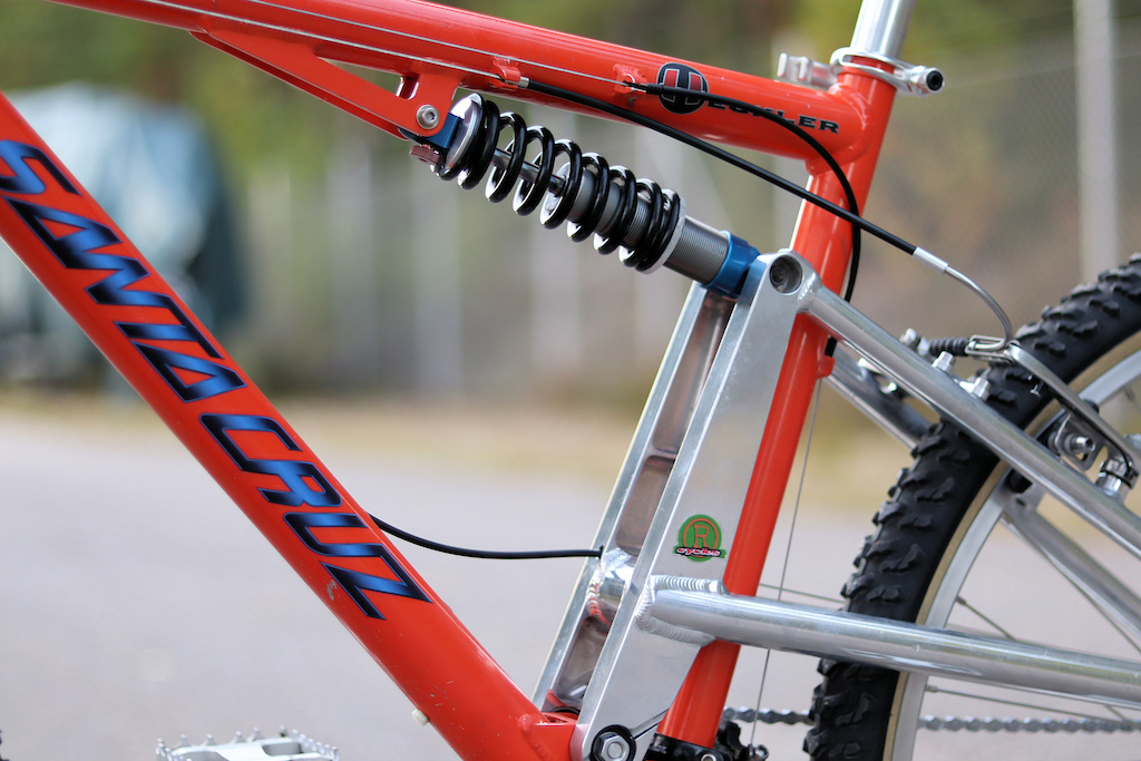 Tällainen Santa Cruz Heckler valmistui eilen. Kaveri oli ostanut tuon uutena R-Cyclesistä vuonna -98, ajanut kisaa sillä aikoinaan ja luovutti rungon talvella mulle päin. Käsittelin rungon, uusin dekaalit, kiillottelin vanhat kulahtaneet kultaset race facen kammet ja vähän muutakin, ja vähitellen keräilin sopivat palikat ympärille. R-Cyclesin tarra jäi tosin edelleen paikalleen!