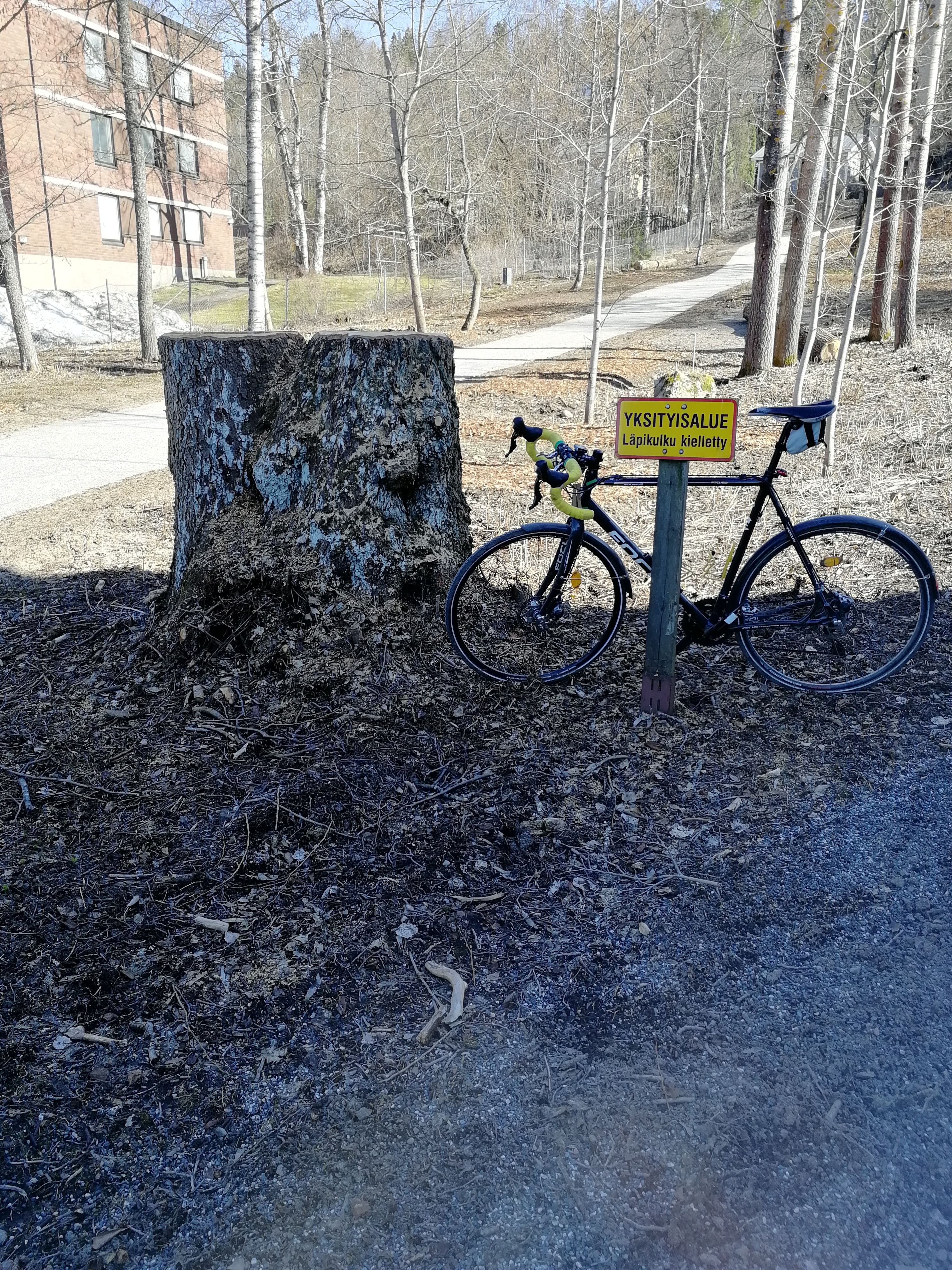 Myllysaaren kärjessä. Ikävää kun heti ennen ensimmäistä siltaa on ajoneuvolla ajo kielletty merkki niin joutuu taluttamaan fillaria koko matkan tuonne kärkeen [emoji6]