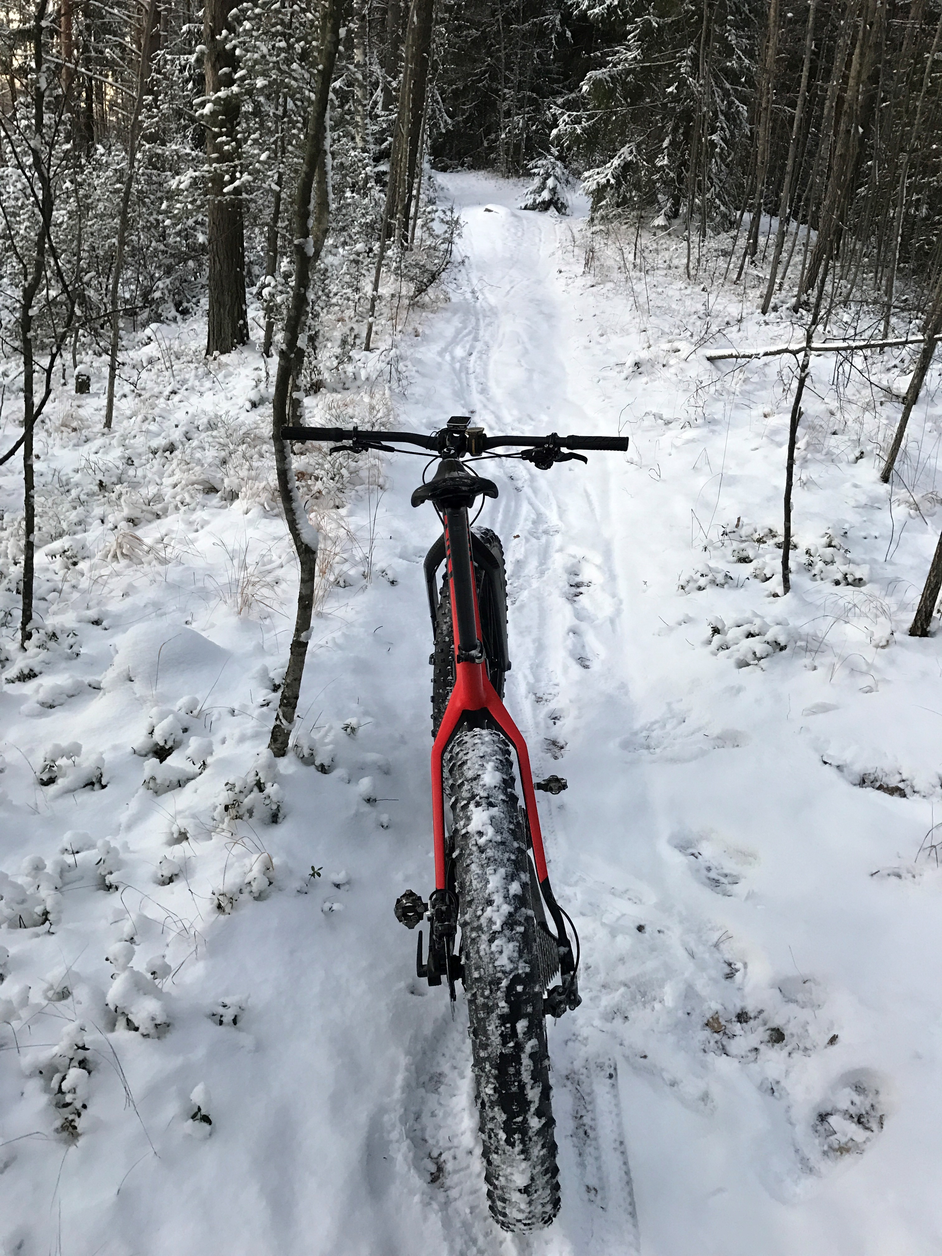 Oltiin eilen ajelemassa kaverin kanssa joka ei kesällä vielä tehnyt fatbikella mitään ja osti itselleen jäykkäperäisen 29:n vaikka suosittelin läskiä. No eilen alkoi ääni muuttua kellossa, kun itse kaasuttelin jäätelöautolla menemään ja odottelin aina polun päässä, että tulee sieltä tunkaten tuolla nastarenkaisella 29 jäykkiksellä. No tänään haettiin sitten tammiston velo&oxygenista cube nutrail hänelle jalkojen väliin ja sitten päästiin taas ajohommiin illalla [emoji4] Aika klassinen tarina. Tässä vielä kuva illan ajolta.