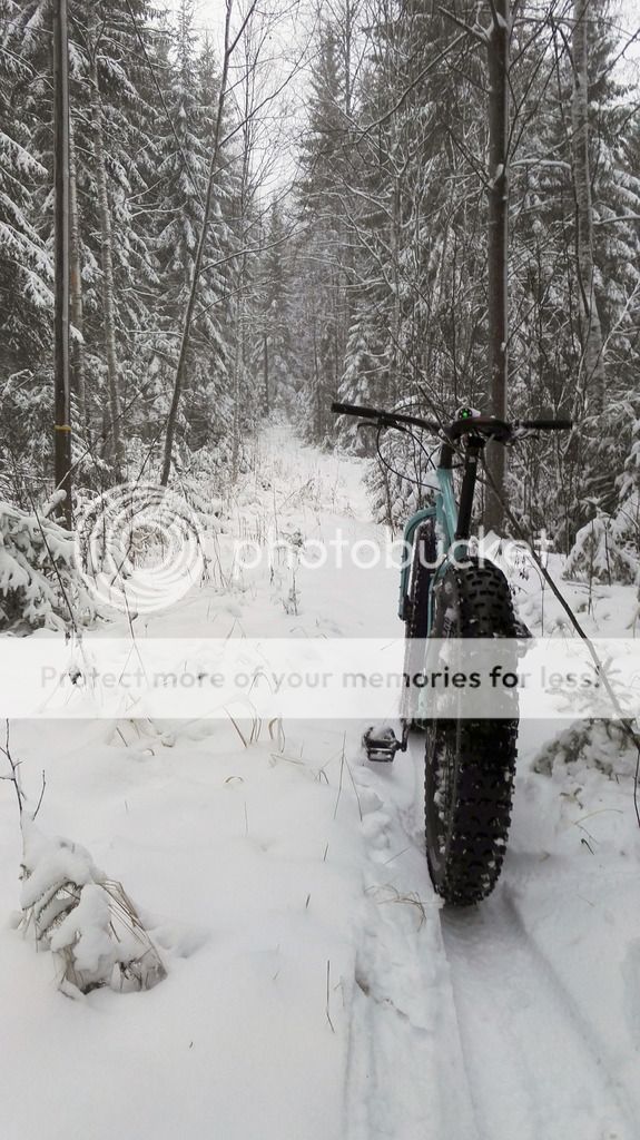 Täälläpäin vähän erilaiset maisemat, ei ole päässyt vielä ihka ensimmäistä läskiä kokeilemaan lumella. Ajoasento alkaa tuntua päivä päivältä paremmalta, sitä näköjään tottuu. Poluilla ajamiseen tarvitaan kyllä paljon enempi uskallusta, tutustumista rengaspaineisiin ja ehkä myös rouheampaa rengasta.