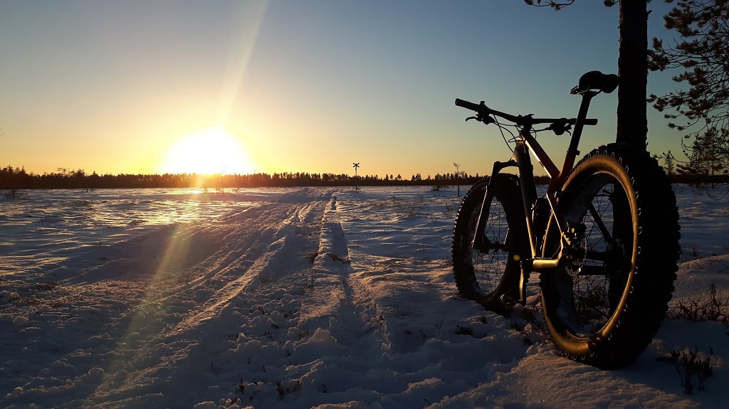 Kyllä meitä läskeilijöitä nyt hellitää. Aivan upeeta ajella, vaikkakin liukasta. Nastat onneksi vähän auttaa